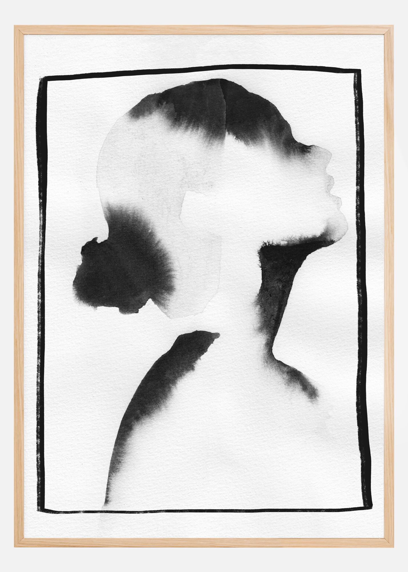 Mäkka akvarelová plaketa s profilom ženy. Pomocou mäkkej akvarelovej techniky sú vytvorené vlasy a tvár ženy tým, že sa farba nechá šíriť vodou. Týmto spôsobom vzniká pútavý čierno-biely obraz, ktorý bude vyzerať skvele na svetlom pozadí.