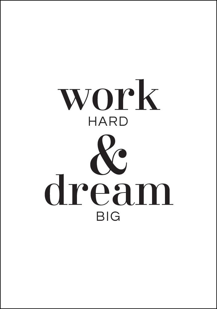 Inšpiratívny poster so silným citátom na povzbudenie vášho dňa. Work Hard and Dream Big sú slová, ktoré by ste mali použiť na to, aby ste sa každé ráno naštartovali. Zaveste si ho v kuchyni, aby vás motivoval pri vašej rannej káve.