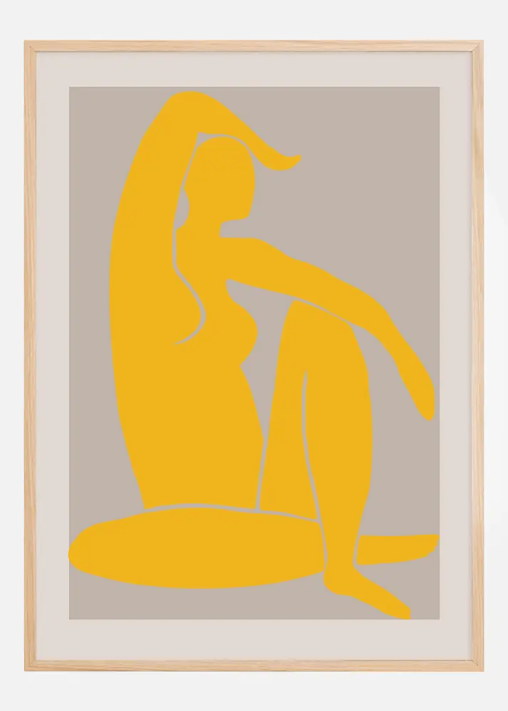 Tento podnetný a elegantný plagát s názvom 'L'arte découpé' zvýrazňuje abstraktnú krásu ľudskej formy. V odvážnom a slnečnom odtieni žltej farby je zobrazená štýlizovaná postava sediaca v uvoľnenej polohe, čo vyvoláva pocit pokoja a zamyslenia. Toto umelecké dielo prekračuje hranice tradičných zobrazení a pozýva diváka zamyslieť sa nad interakciou formy a farby. Jeho čisté a plynulé línie na tmavosivom pozadí ponúkajú moderný výklad klasickej siluety, čo z neho robí ideálny plagát pre tých, ktorí oceňujú súčasný dizajn a umenie.
