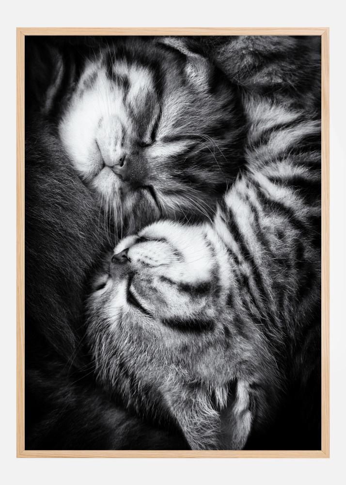 Roztomilý plagát so zvieratami s dvoma mačiatkami, ktoré spia. Kúpte si tento tlač a užívajte si pocit objatia, keď sa budete pozerať na tieto rozkošné mačky, ktoré sa objímajú.