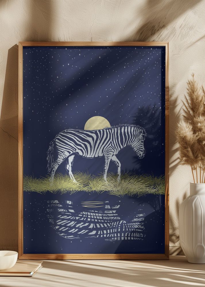 https://www.bgastore.sk/zebra-at-waterhole-moonrise-poster-21x29.7-cm-a4