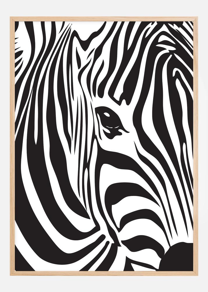 Grafický plagát so záberom na zebru. Plagát sa skvele hodí na zavesenie ako súčasť obrazovej steny s divo žijúcimi zvieratami, či už vo forme ilustrácií alebo fotografií, ktoré sa stanú stredobodom pozornosti v miestnosti. Elegantný grafický čiernobiely motív robí plagát vhodným ako do domácnosti, tak aj do verejných priestorov. Skombinujte tlač s čiernym rámom na obrázky s úzkym profilom, aby ste čo najlepšie zvýraznili zebrový vzor.
