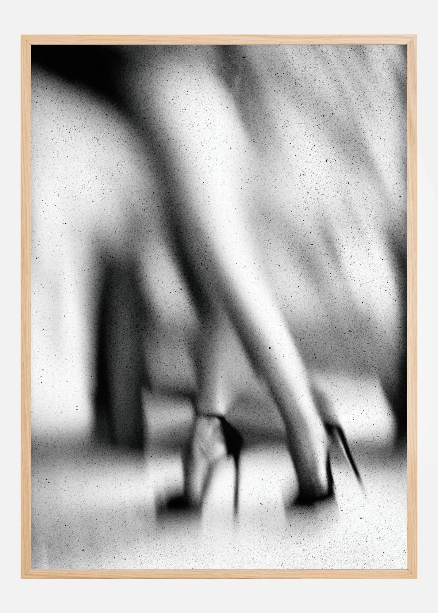 Tento umelecký plagát sa pohráva s rozmazanosťou a kontrastom, aby vytvoril pocit pohybu a abstrakcie. Zobrazuje pár nôh v topánkach na vysokých podpätkoch v atmosférickom a takmer pohybovom rozmazaní, čo dielu dodáva éterický a dynamický pocit. Monochromatická farebná škála plagátu vyvoláva pocit nadčasovosti i modernosti.