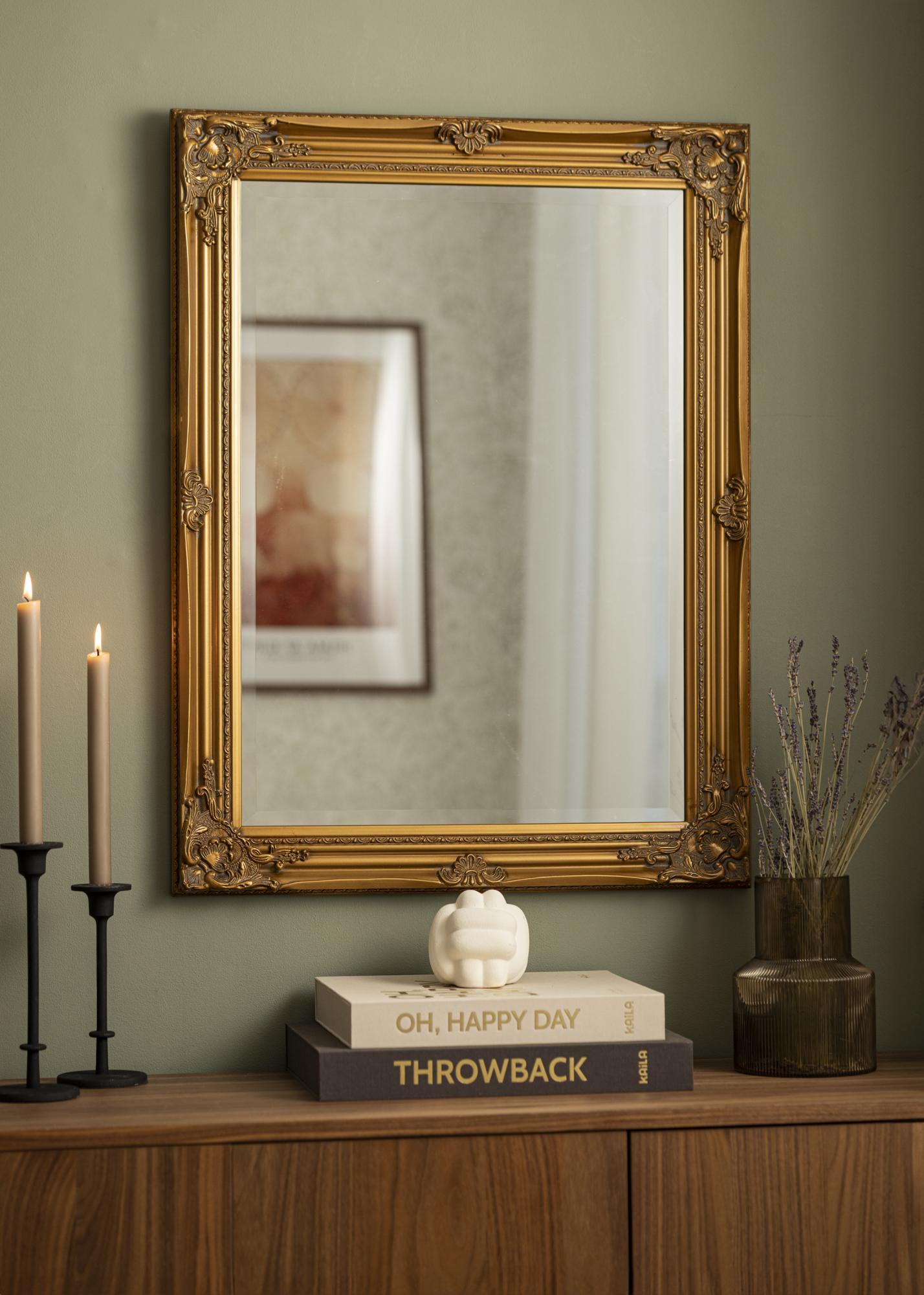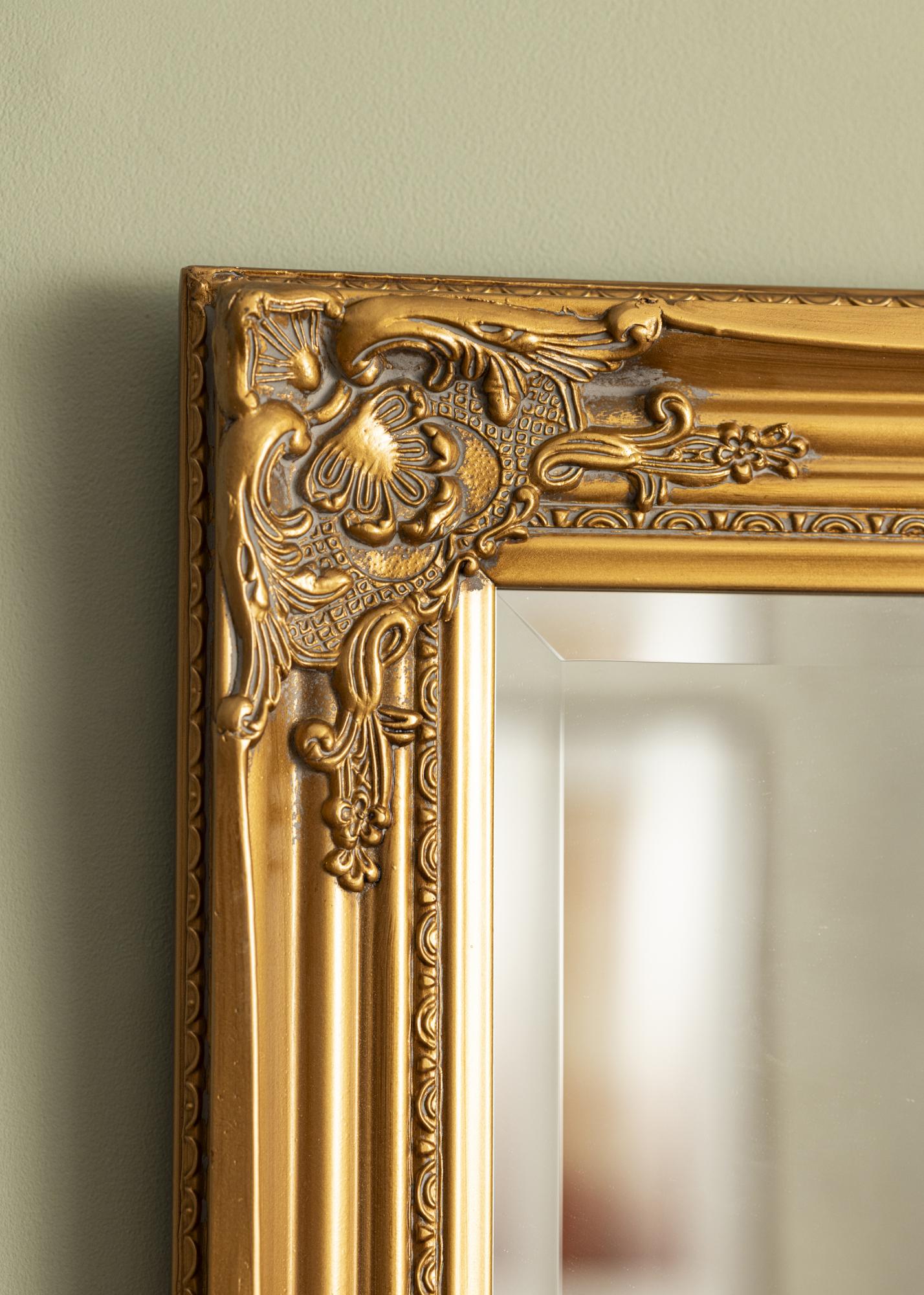 Zrkadlo Antique Gold je nástenné zrkadlo s tradičným formátom a tvarom. Má drevený rám s krásnou klasicky navrhnutou dekoráciou, ktorá bola odliata v sadre a potom aplikovaná na rám. Tento rám robí zrkadlo krásnou ozdobou, ktorá priťahuje pohľady.