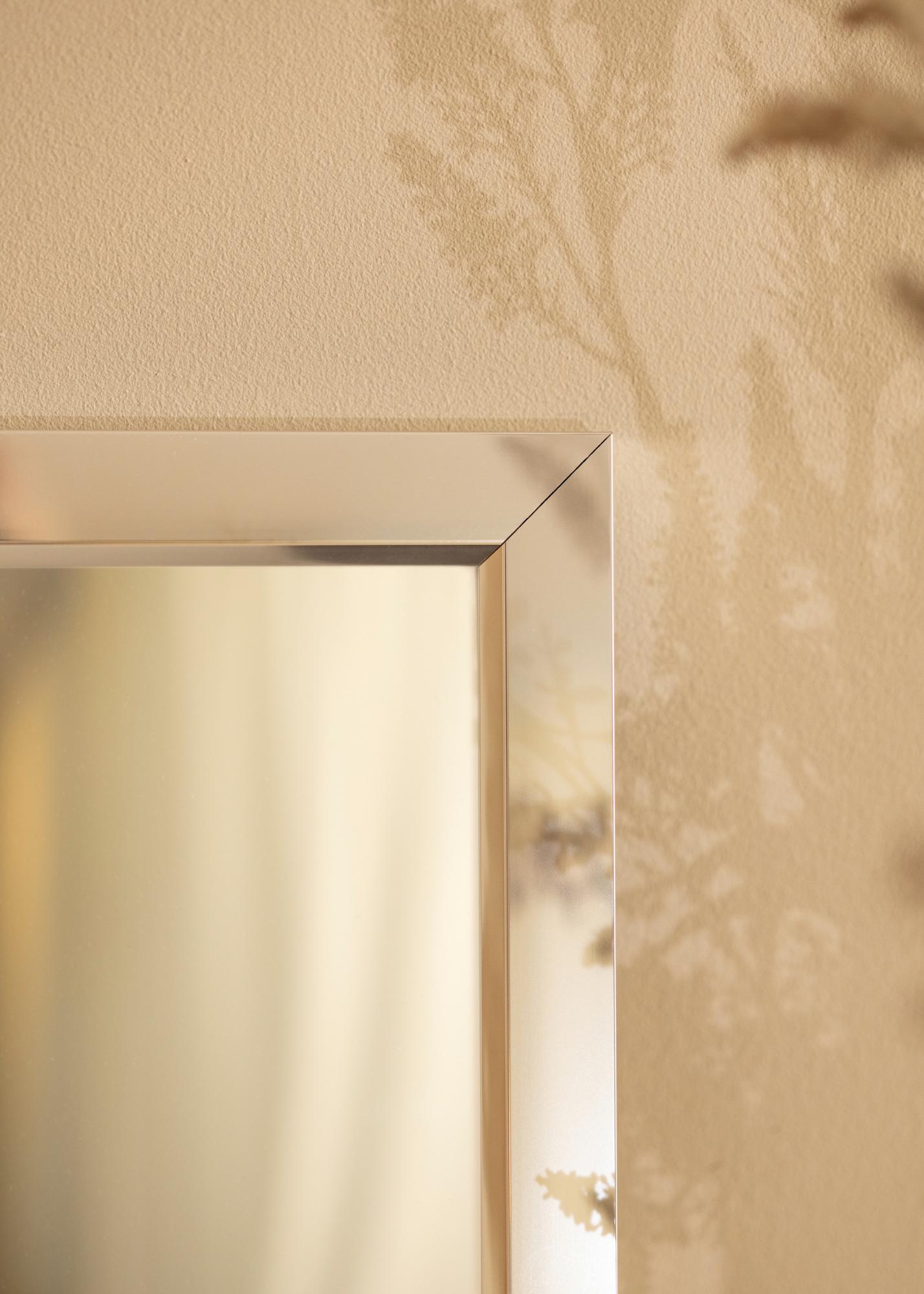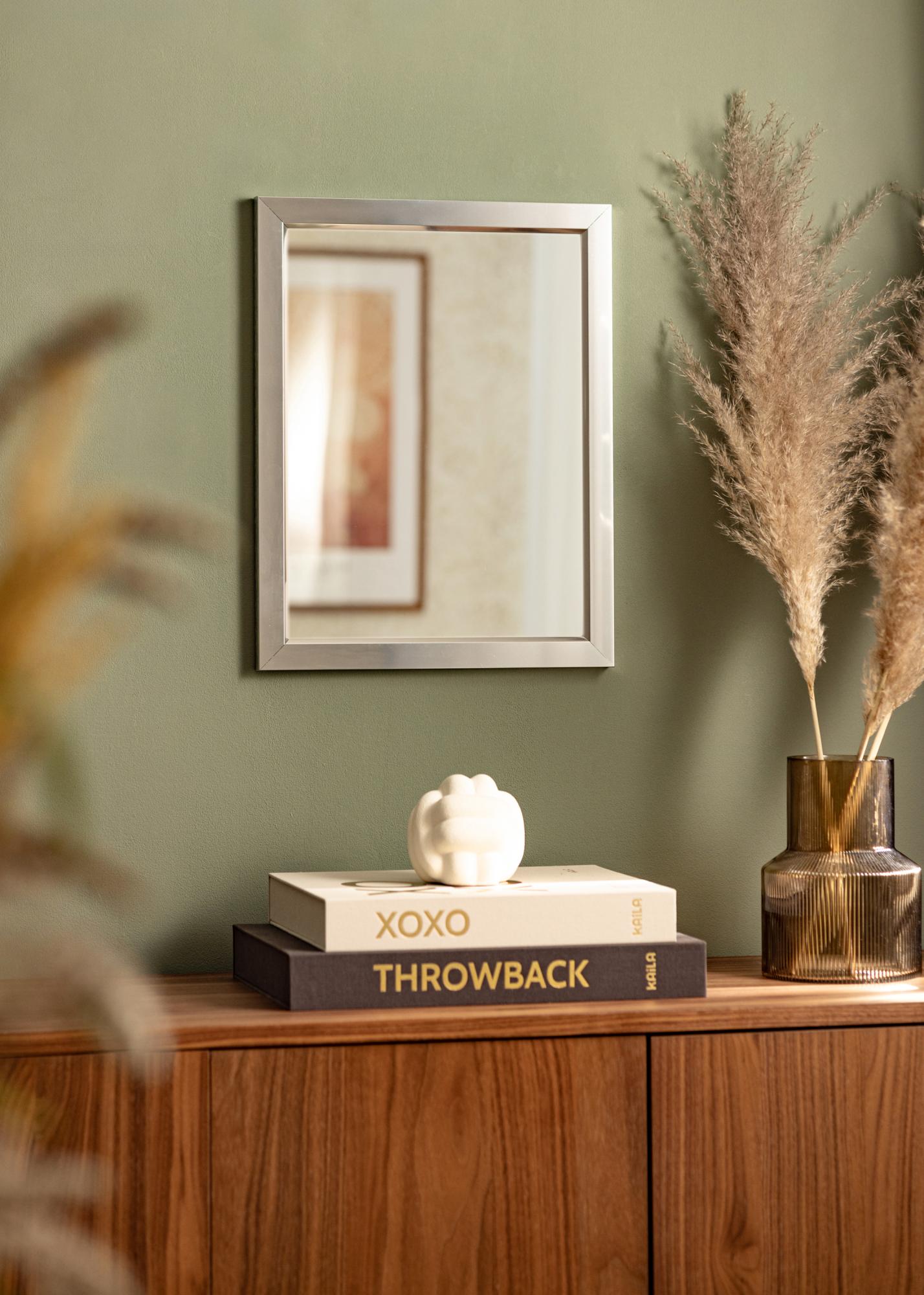 Pôsobivý štýlový zrkadlo s vysokolesklým strieborným rámom s pocitom skleneného povrchu. Rám je vyrobený z hliníka v Nemecku a má vysokú kvalitu. Vysokolesklý vzhľad rámu priťahuje pozornosť a efektívne odráža svetlo, čo je dobré, ak chcete použiť zrkadlo na osvetlenie tmavej miestnosti. Čistý dizajn zrkadla sa hodí do minimalistických moderných interiérov aj do domácností, kde sa mieša nové a opotrebované.