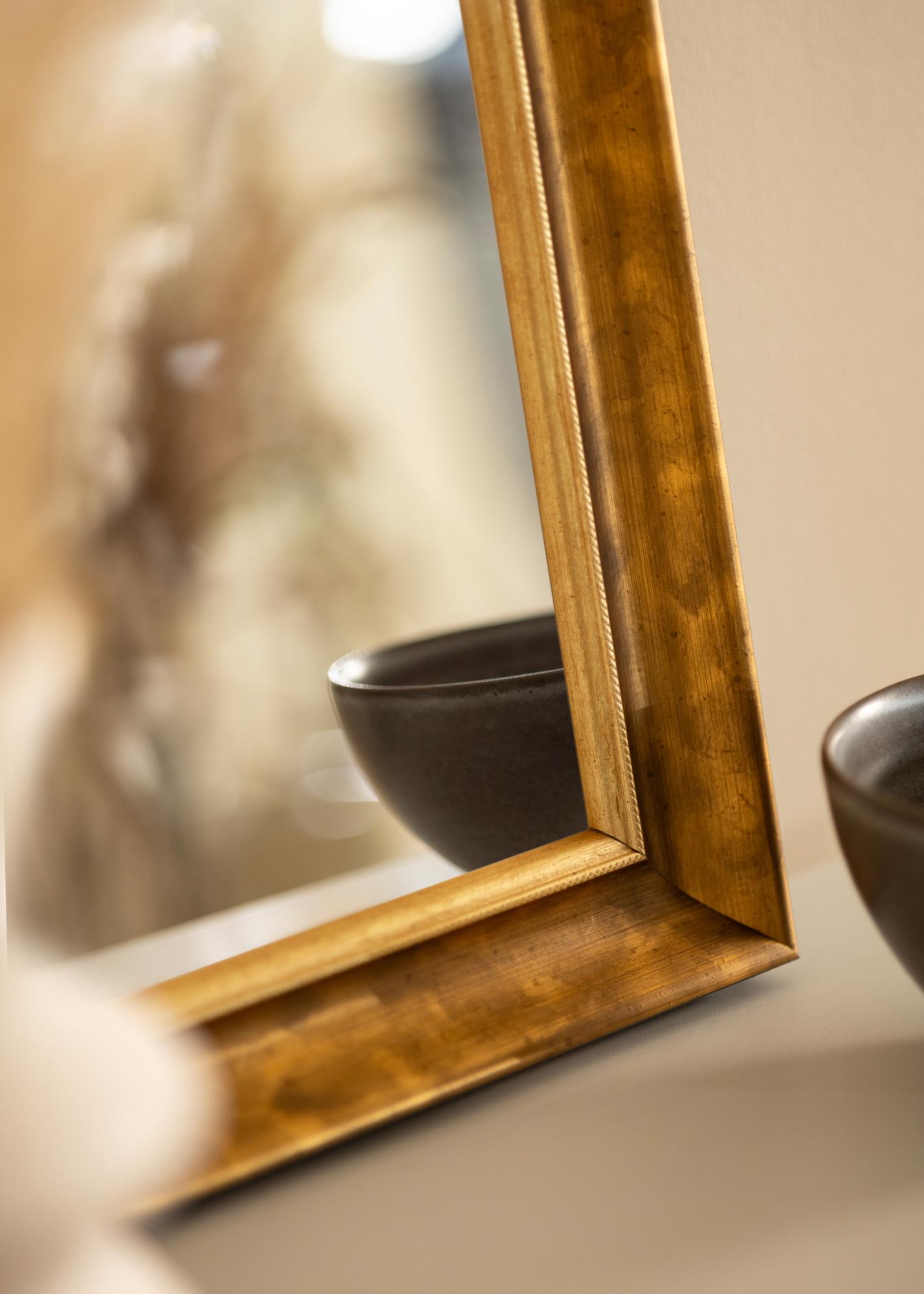 Vyhradené zrkadlo v ľubovoľnej veľkosti s krásnym antickozlatým profilom s prvkami medi. So svojím širokým a hlbokým profilom je toto zrkadlo zaručene viditeľné.