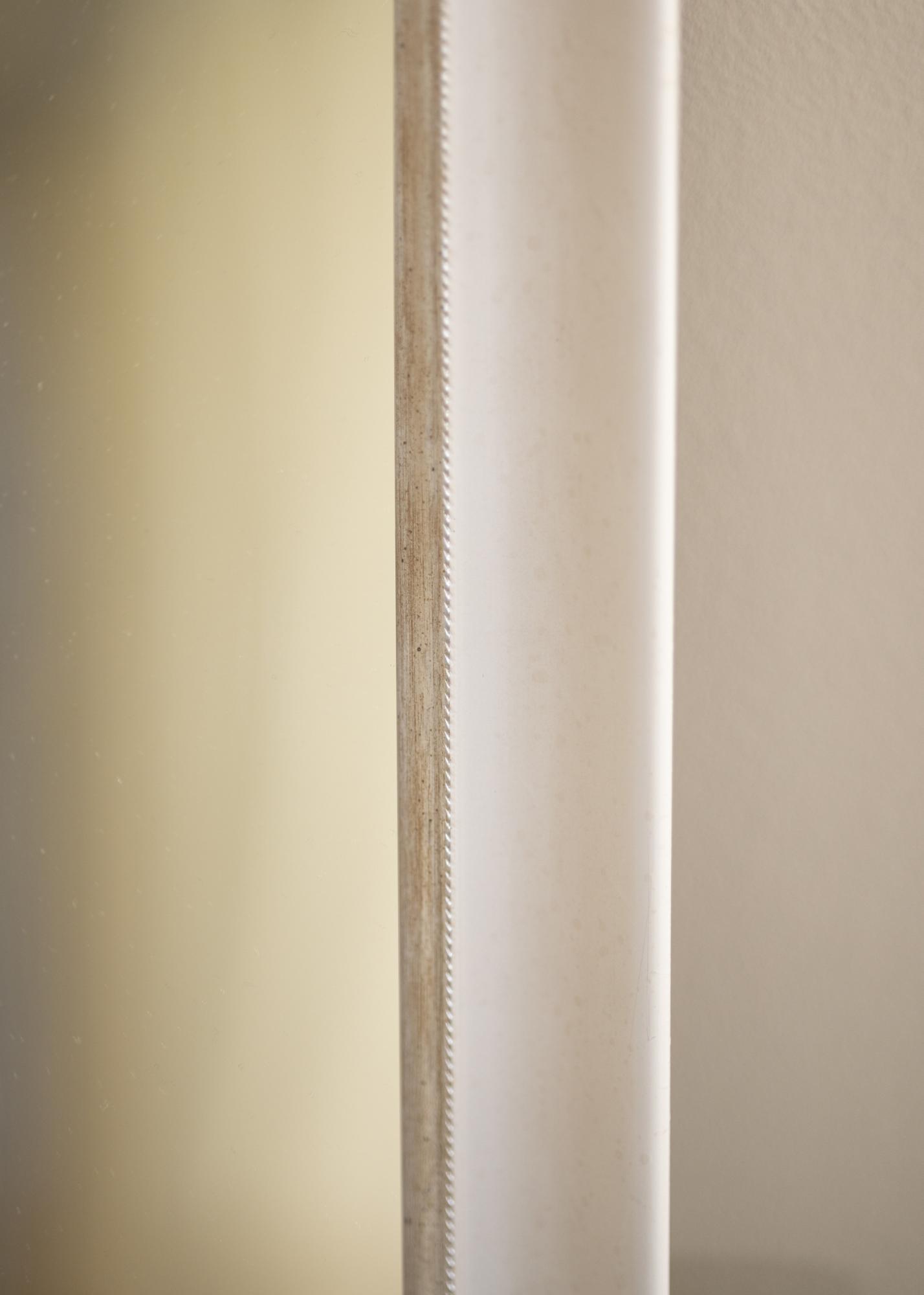 Robustné zrkadlo v ľubovoľnej veľkosti s bielym klasickým profilom. Najbližšie k motívu je elegantný strieborný okraj, ktorý dodáva zrkadlu extra lesk.