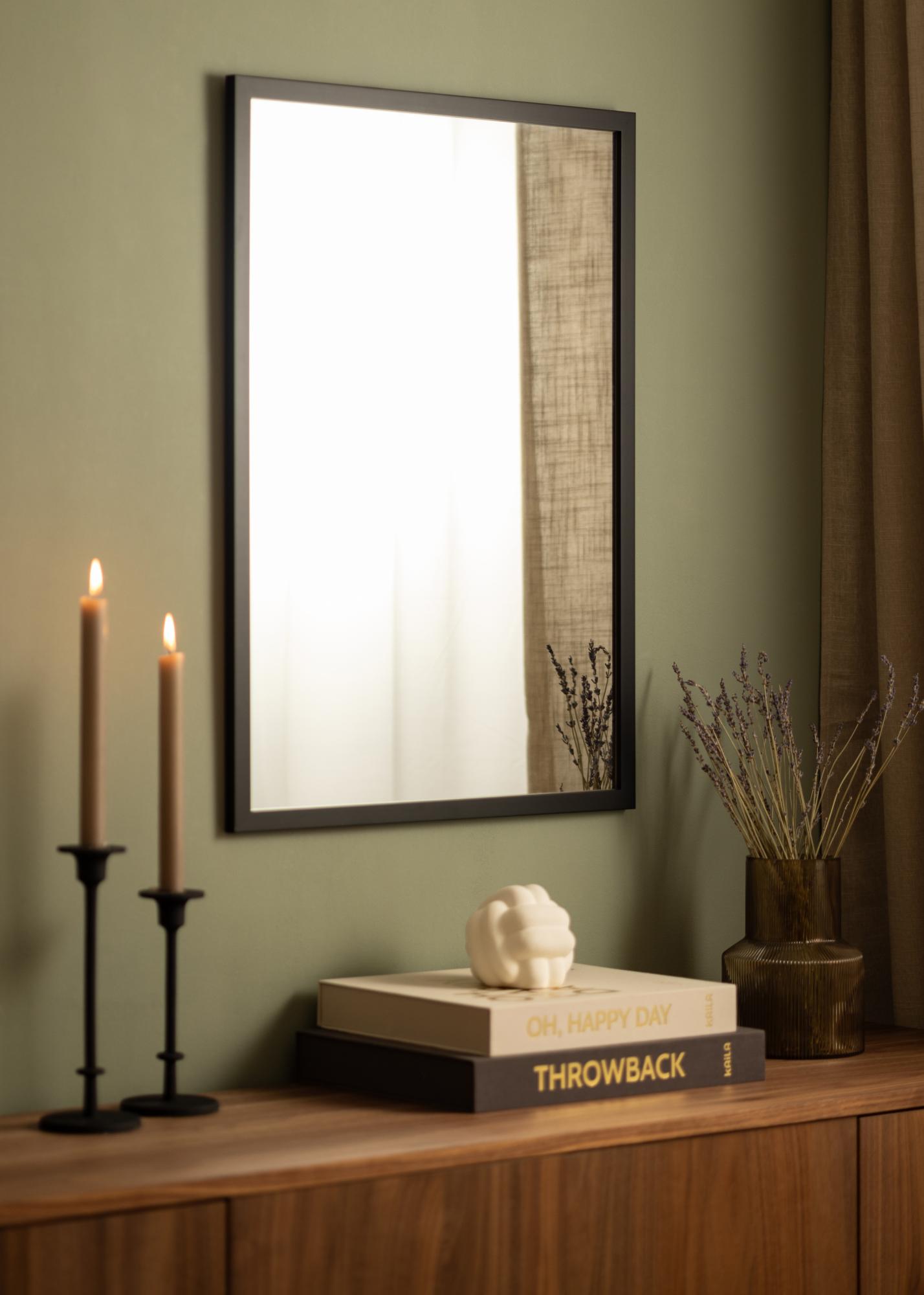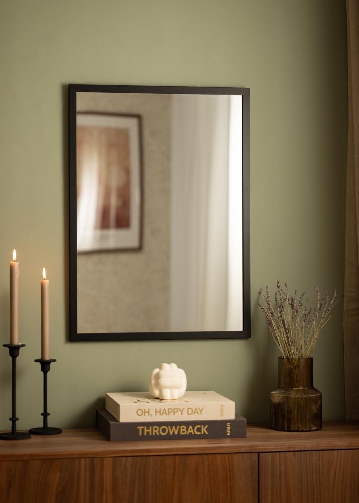 Black Wood je vynikajúca voľba pre tých, ktorí hľadajú elegantné nástenné zrkadlo s jednoduchým čiernym rámom. Rám je vyrobený z maľovaného ayosu a vybavený priehľadným zrkadlovým sklom. Rám so šírkou 22 mm má tradičný štvorcový profil, ktorý necháva povrch zrkadla byť v centre pozornosti.