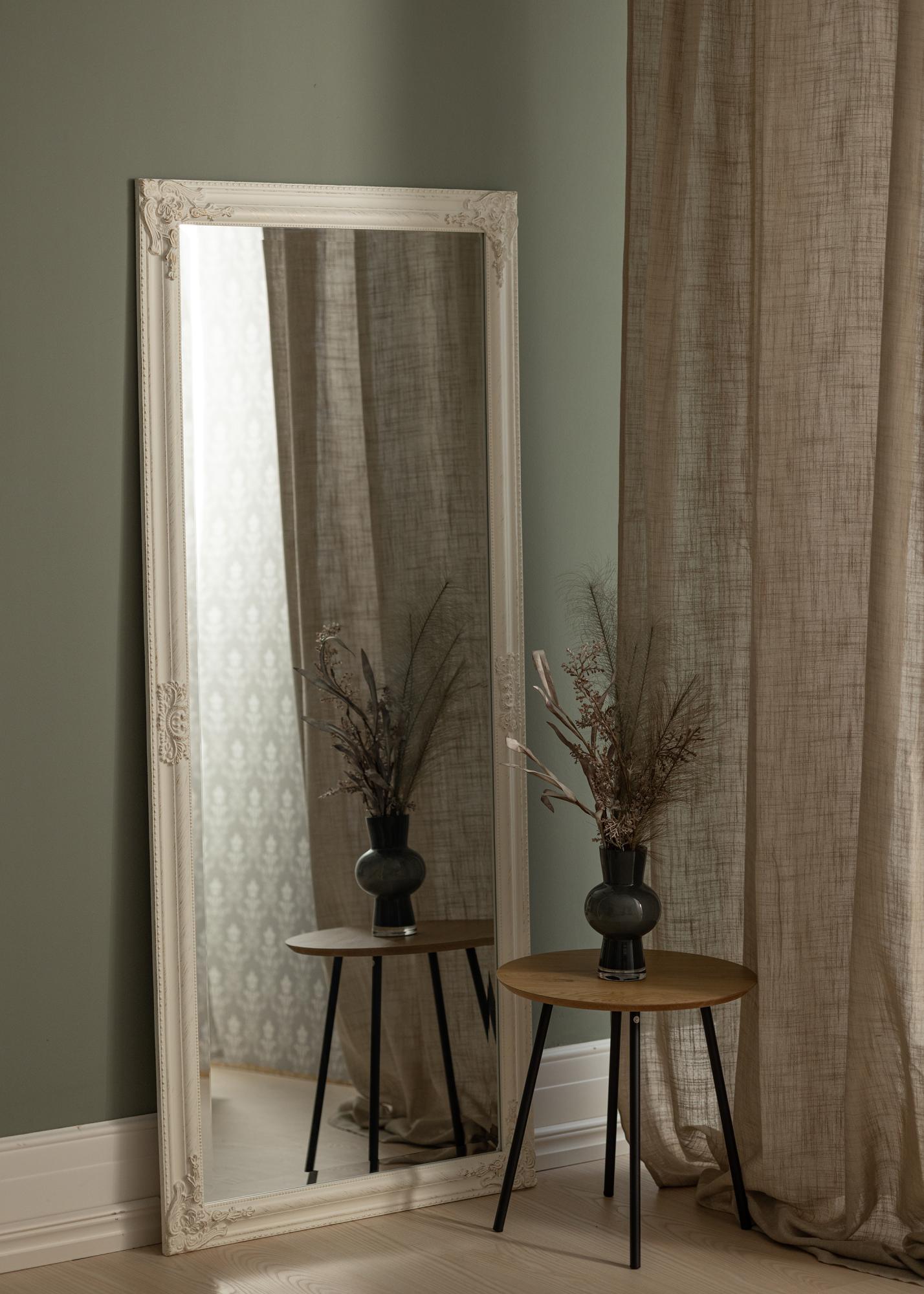 Objavte štýlovú eleganciu s naším obdĺžnikovým zrkadlom, dokonalou kombináciou klasického šarmu a modernej jednoduchosti. So svojimi veľkorysými rozmermi 70x160 cm ponúka toto zrkadlo praktickú a dekoratívnu funkciu vo vašom domove. Biela rám je bohato zdobený detailmi, ktoré evokujú dávne časy, zatiaľ čo čistý tvar udržiava dizajn aktuálny a ľahko zladiteľný s vaším ostatným interiérom.