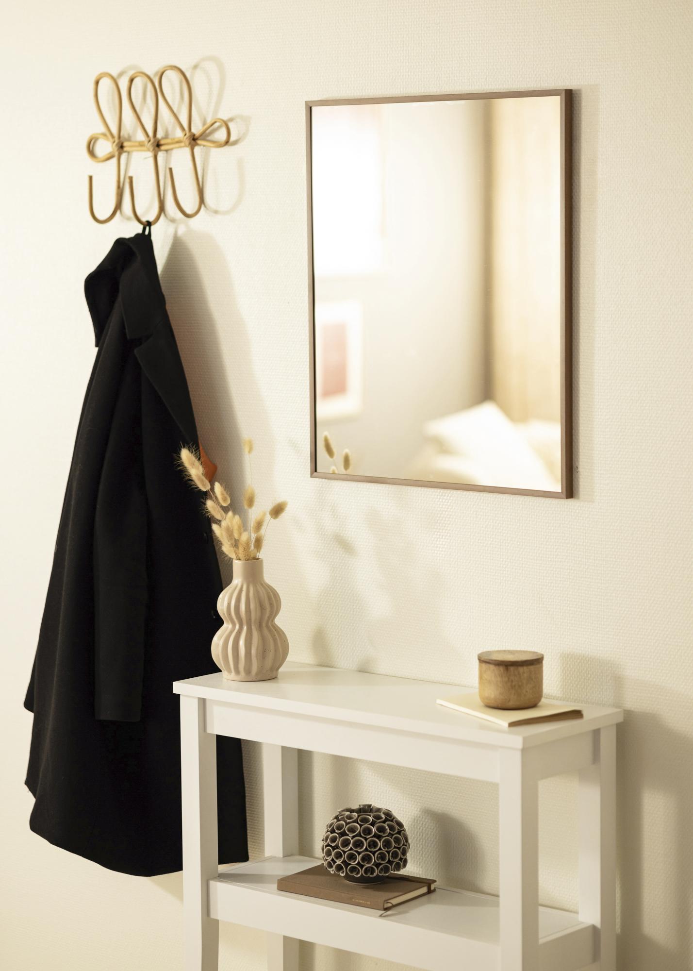 Tento nástenný zrkadlo je perfektnou kombináciou štýlu a funkcie. Rám je vyrobený z hliníka a je takmer 10 mm široký, čo poskytuje elegantný, minimalistický výraz. Zrkadlo patrí do série nástenných zrkadiel v rôznych farbách a veľkostiach, z ktorých toto je variant v drevonej farbe s rozmermi 51,1x61,1 cm.