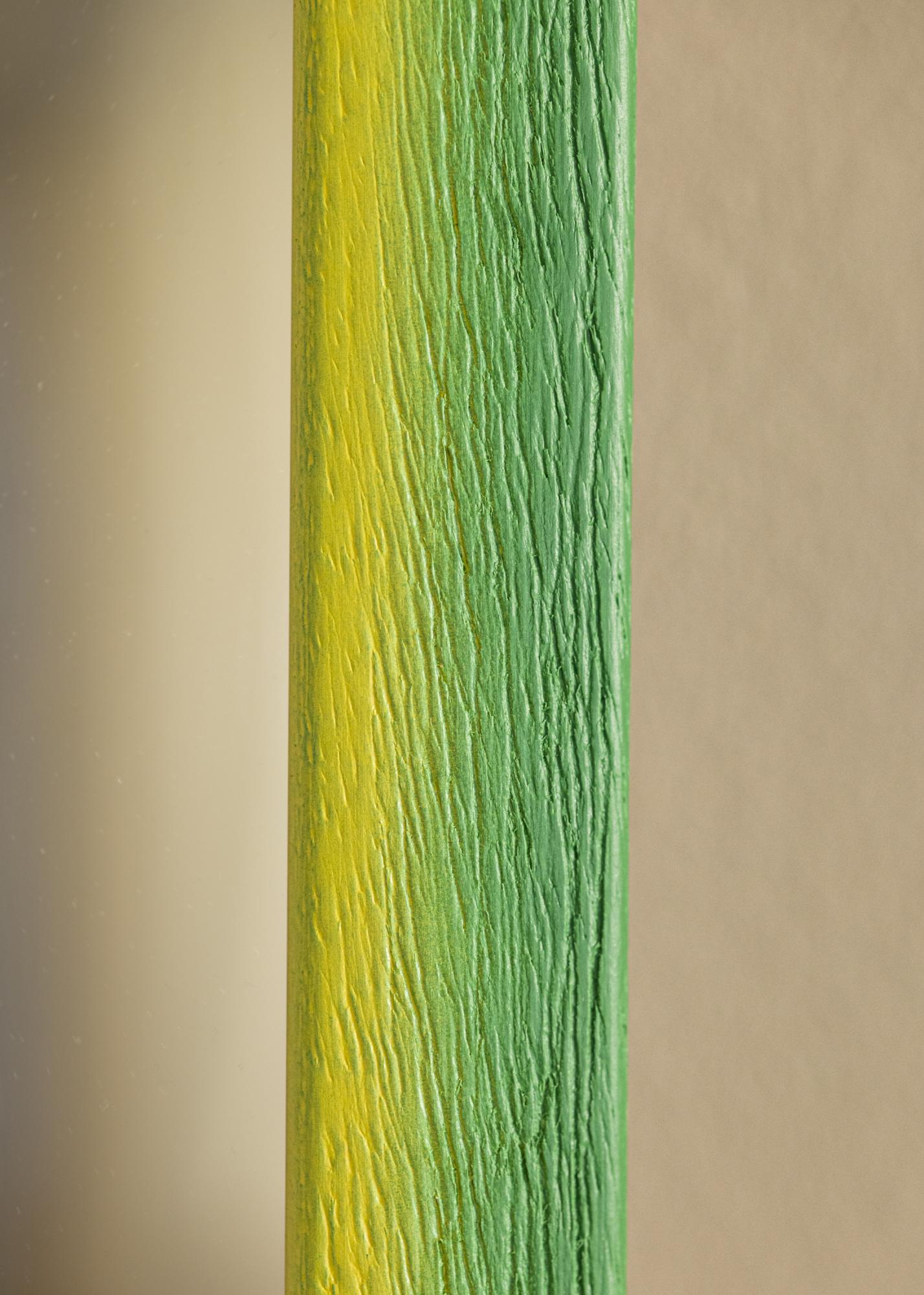 Toto zrkadlo sa vyznačuje svojou živou farebnou škálou, kde mäkký prechod zo slnečnej žltej na bujnú zelenú vytvára harmonickú a prívetivú atmosféru. Povrch je charakterizovaný zreteľnou drevenou štruktúrou s hlbokými žilami, čo dodáva zrkadlu hmatový pocit, ktorý je zároveň moderný a rustikálny. Farebné odtiene sa prirodzene spoja a vytvárajú efekt ručného maľovania s organickým výrazom, čo robí každé zrkadlo jedinečným.