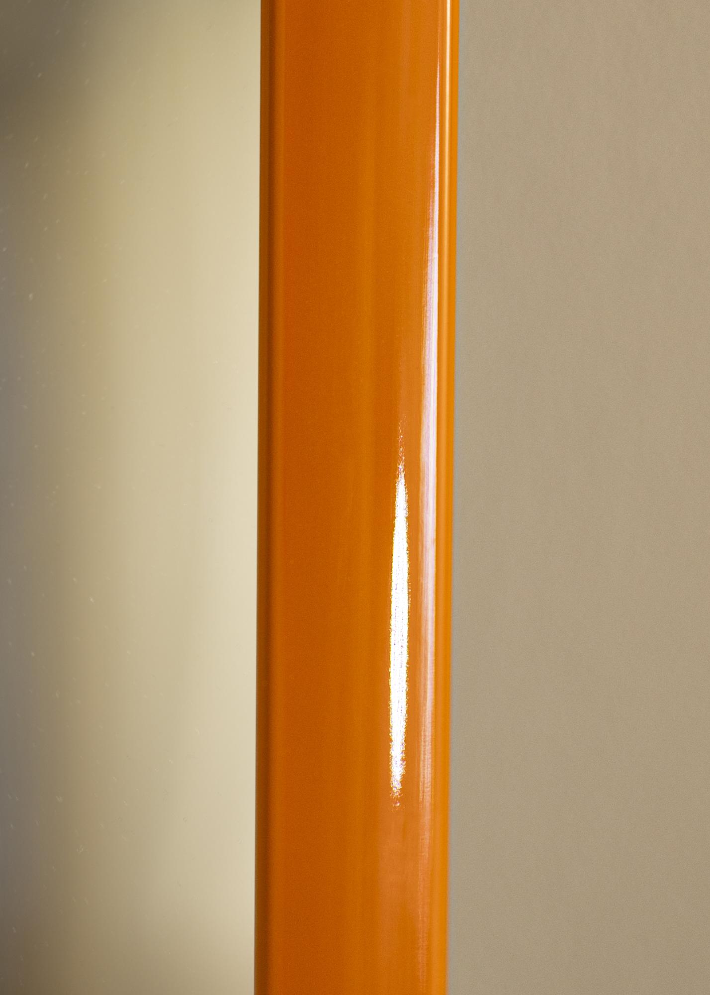 Rám zrkadla je široký 23 mm a má hĺbku 13 mm, čo poskytuje stabilný a robustný pocit bez zahltenia miestnosti. Vyrobené z dreva Ayos, toto zrkadlo ponúka odolnosť a štýl. Úzky rám dodáva moderný vzhľad a umožňuje, aby živá oranžová farba bola v centre pozornosti.