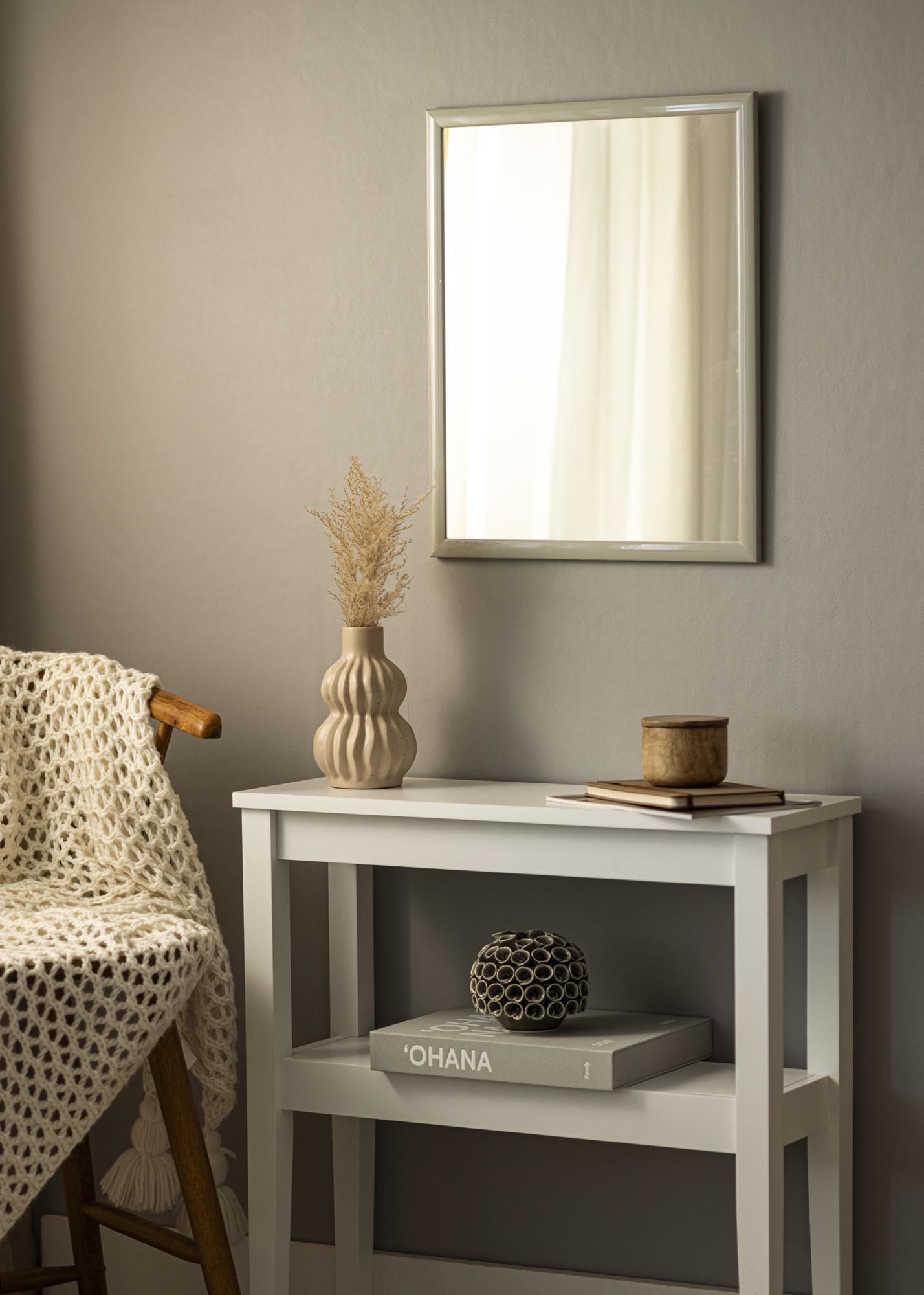 Toto zrkadlo je vyrobené z Ayosového dreva, čo mu dodáva trvácnu a kvalitnú konštrukciu. Svetlosivá farba s vysokolesklým povrchom dáva zrkadlu sofistikovaný a odrazivý povrch. Hladké lakovanie zvýrazňuje jemné odtiene farby a vytvára živý výraz, ktorý sa mení v závislosti od uhla svetla.
