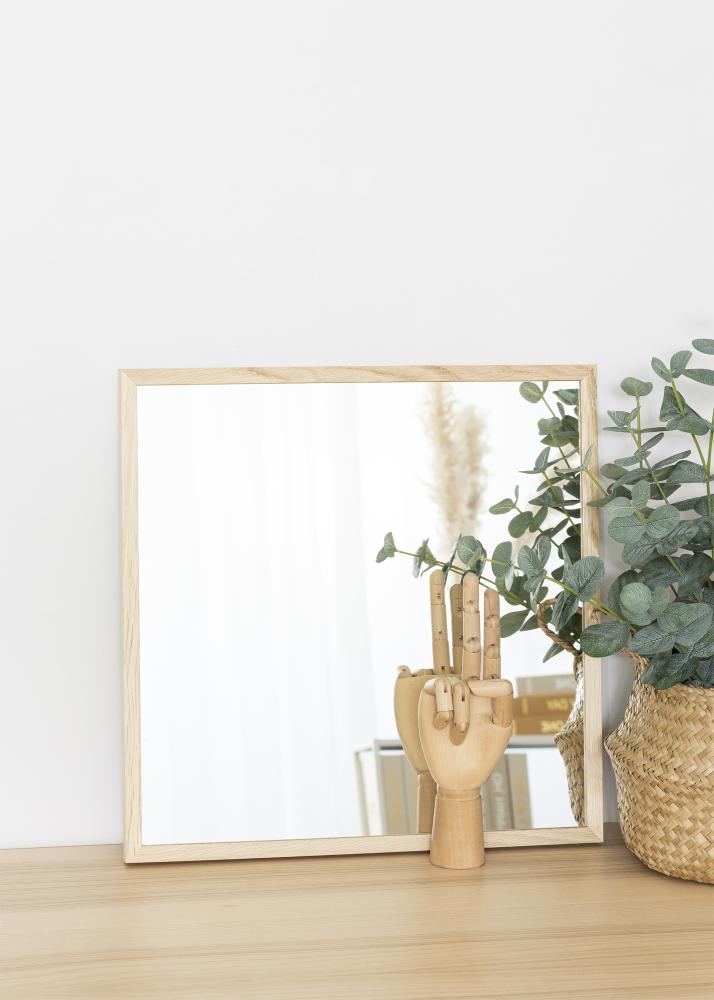 Toto je nástenné zrkadlo s tenkým dreveným rámom, ktoré výborne zapadne do moderných aj viac bohémskych domácností. Zrkadlo je ukážkou škandinávskeho dizajnu v jeho najlepšej podobe, s nefarbeným zrkadlovým sklom a svetlým dreveným rámom s rovným profilom, ktorý spolu vytvára svetlý a svieži vzhľad.