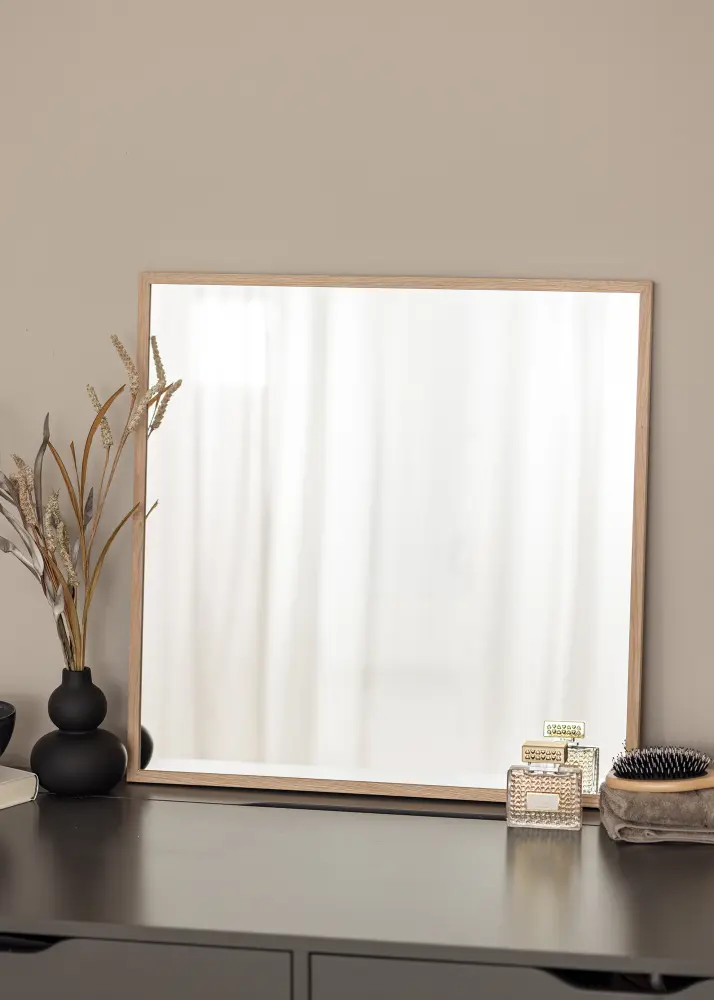 Toto je nástenné zrkadlo s tenkým dreveným rámom, ktoré je vynikajúce do moderných aj viac bohémskych domov. Zrkadlo je ukážkou škandinávskeho dizajnu v jeho najlepšej podobe, s nefarbeným zrkadlovým sklom a svetlým dreveným rámom s rovnou profilovou, ktoré spolu vytvárajú svetlý a svieži vzhľad.