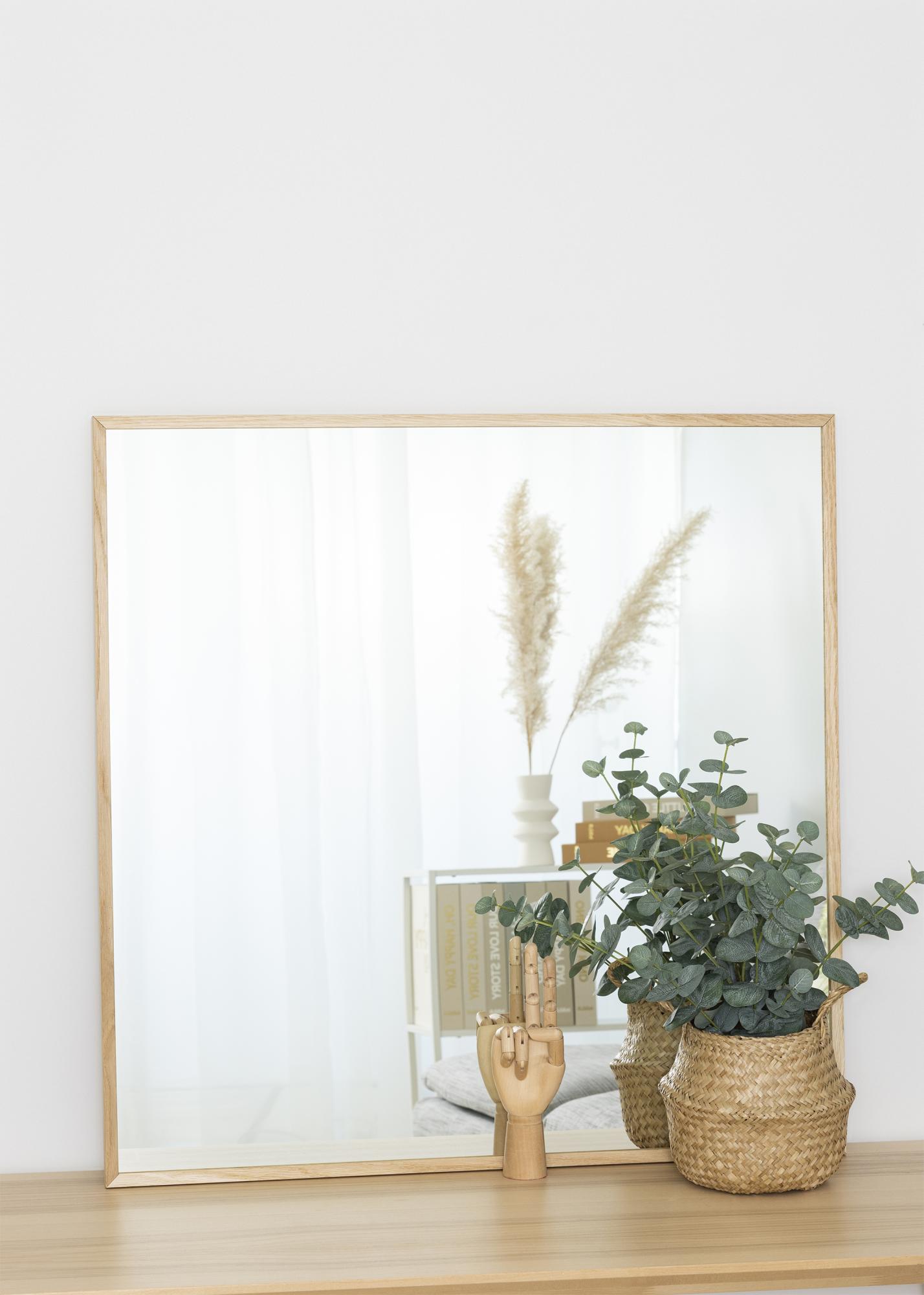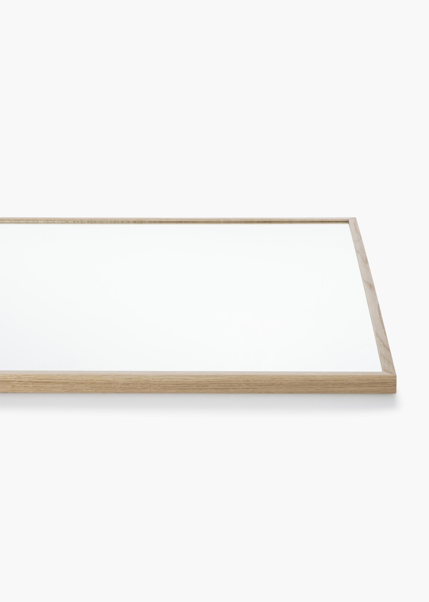 Toto je nástenné zrkadlo s tenkým dreveným rámom, ktoré sa výborne hodí do moderných aj viac bohémsky ladených domácností. Zrkadlo je ukážkou škandinávskeho dizajnu v jeho najlepšej podobe, s nefarbeným zrkadlovým sklom a svetlým dreveným rámom s rovnakým profilom, ktoré spolu vytvárajú svetlý a svieži vzhľad.