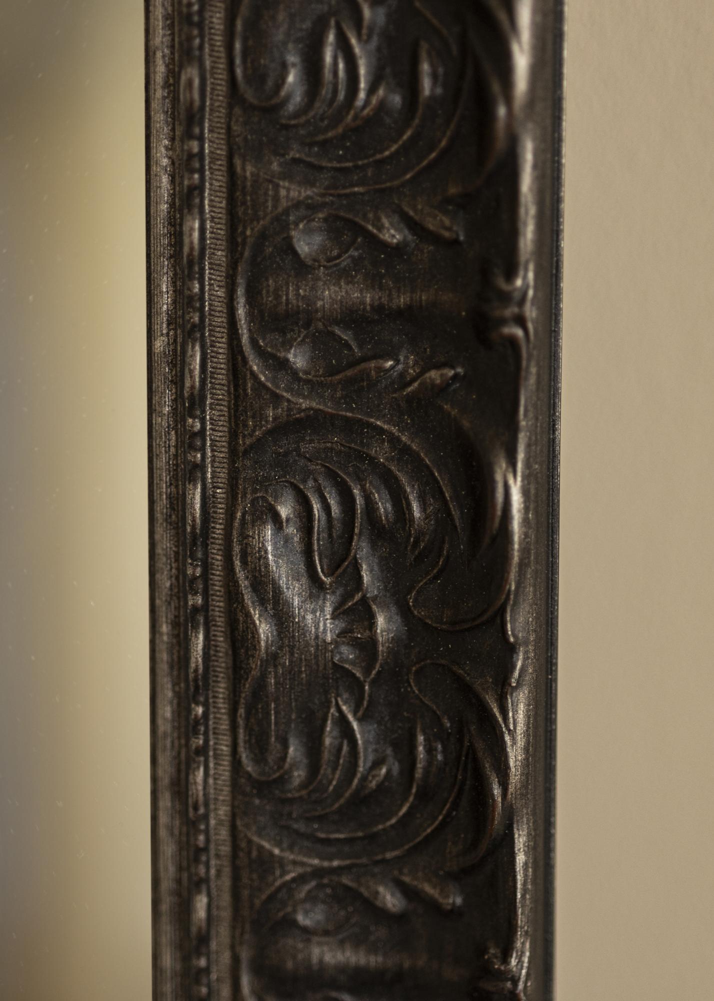 Rám zrkadla Durham Čierne je 70 mm široký, čo zrkadlu dodáva robustný a pevný pocit. Hĺbka 35 mm prispieva k jeho stabilite a zaisťuje, že bezpečne sedí na stene. Vyrobené z borovicového dreva, toto zrkadlo má tmavý antický hnedý vzhľad, ktorý mu dodáva starožitný vzhľad a posilňuje jeho klasický a rustikálny charakter.