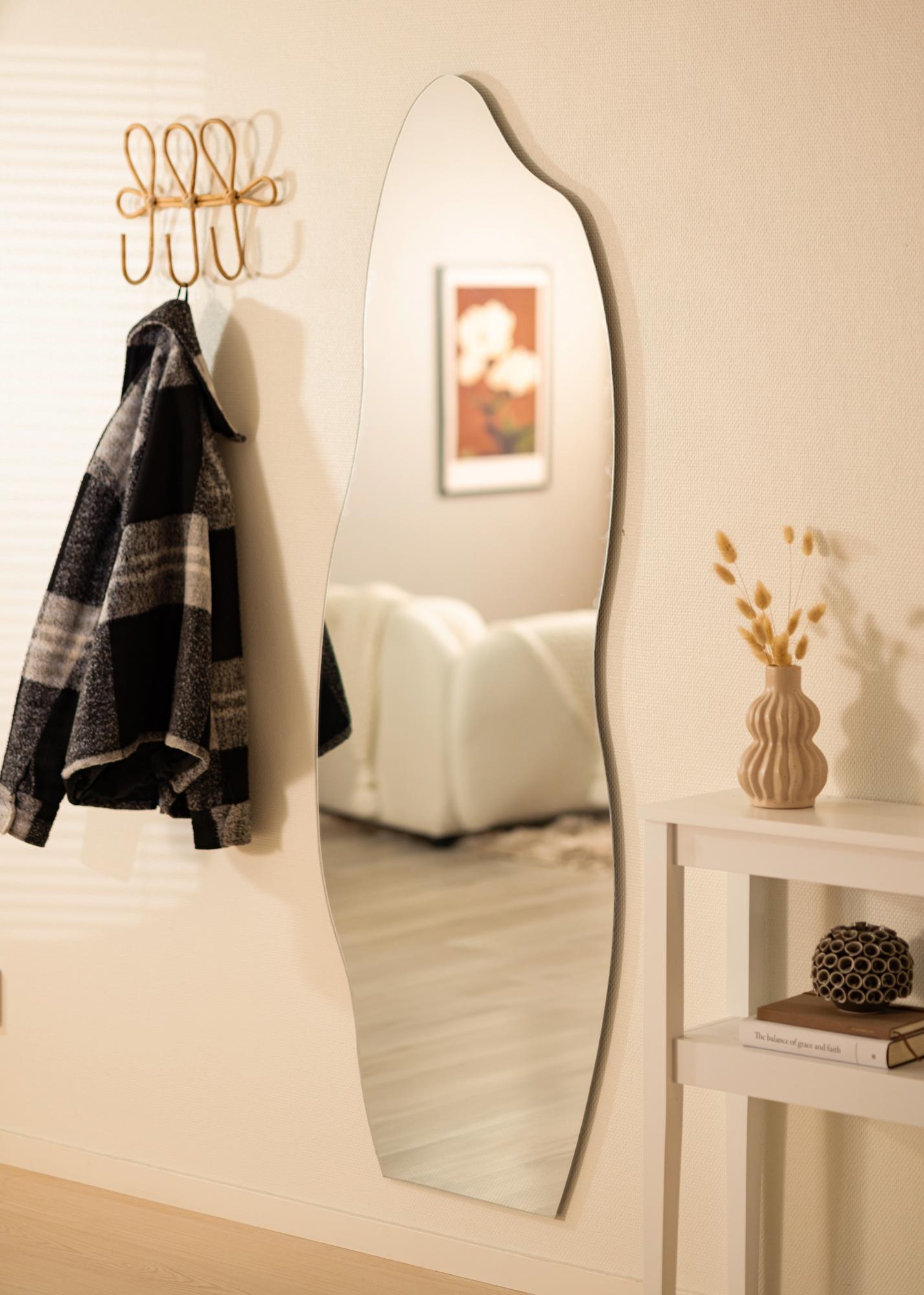 Zrkadlo má jedinečný, vlnovitý tvar, ktorý je široký pri základni a elegantne sa klenie nahor. Tento nezvyčajný tvar z neho robí umelecké dielo samo o sebe a pridáva dynamický dotyk na vašu stenu. Je navrhnuté tak, aby bolo centrálnym bodom vášho domova, či už je umiestnené v predsieni, spálni alebo obývačke.