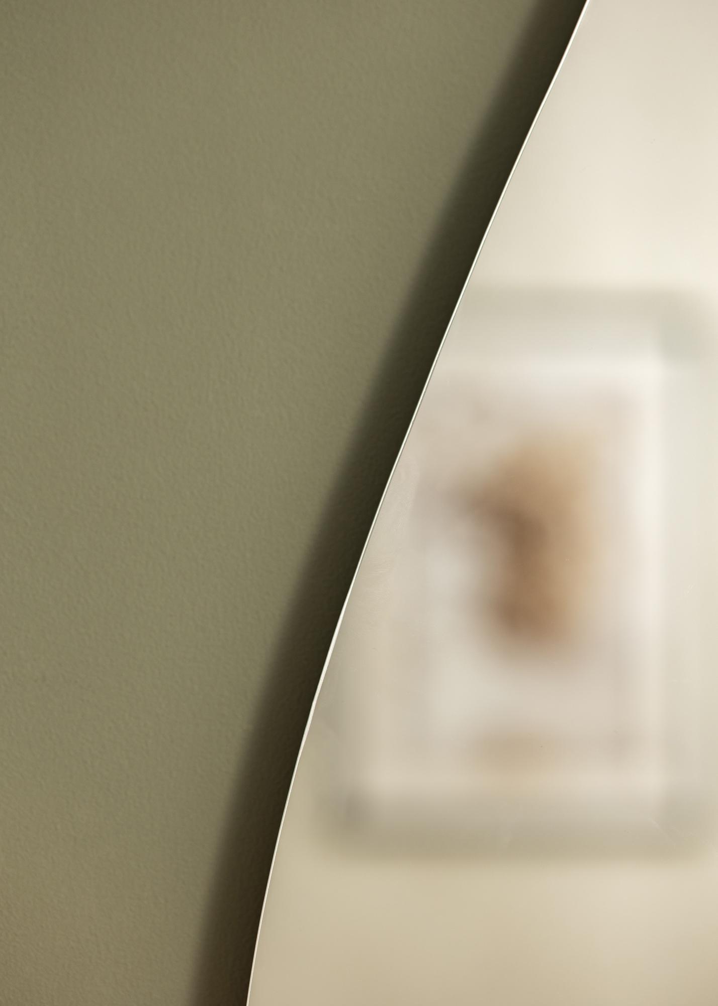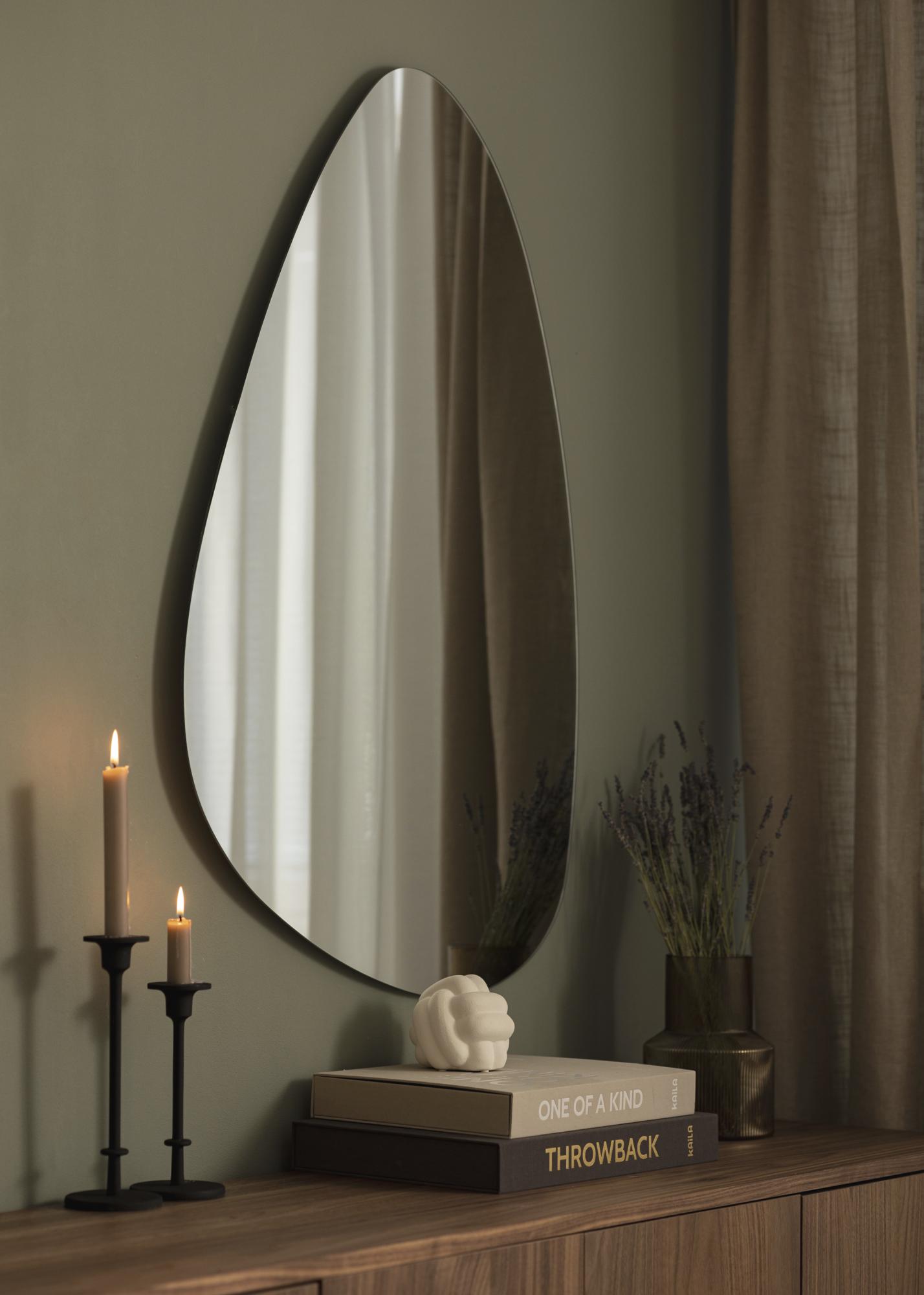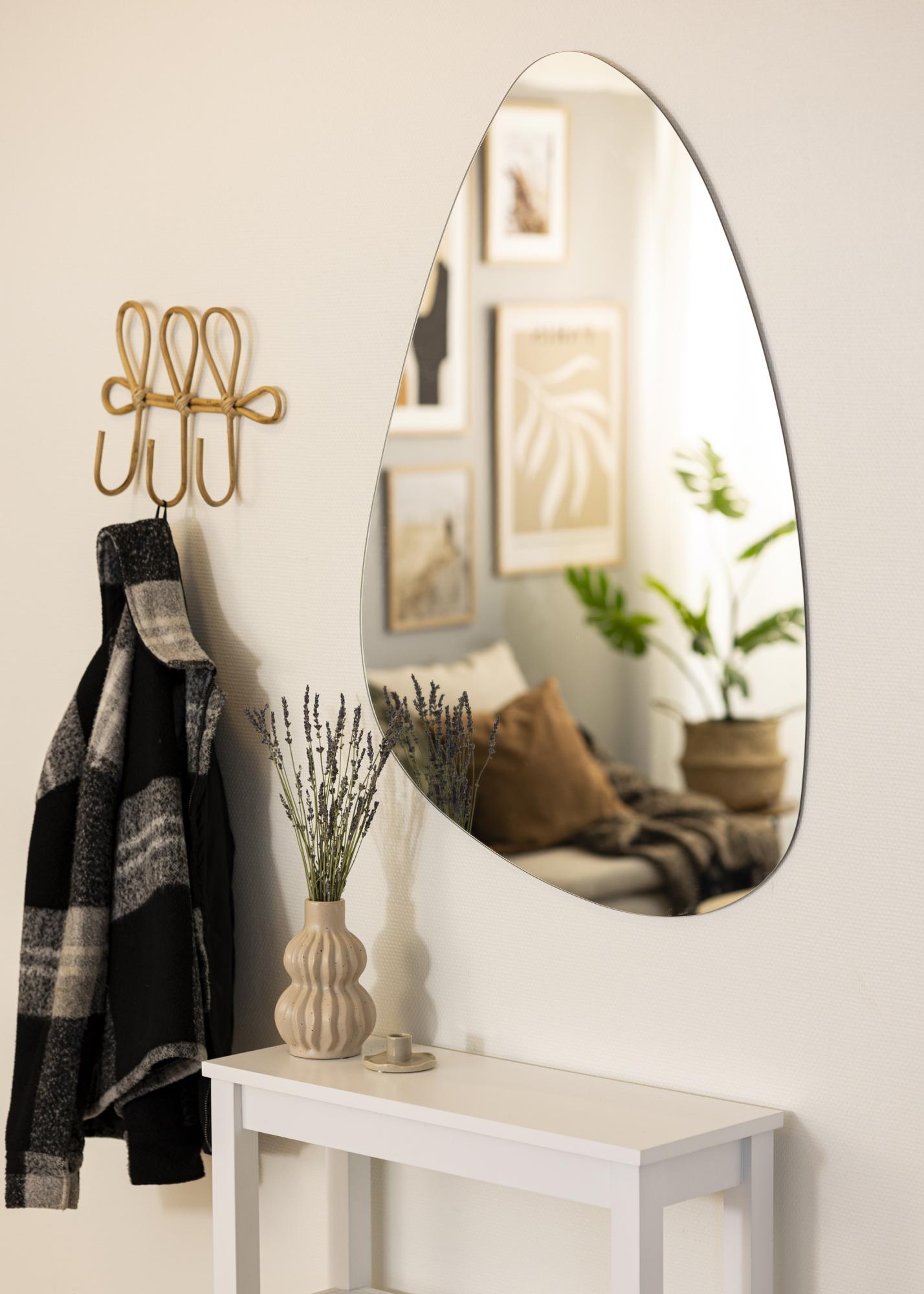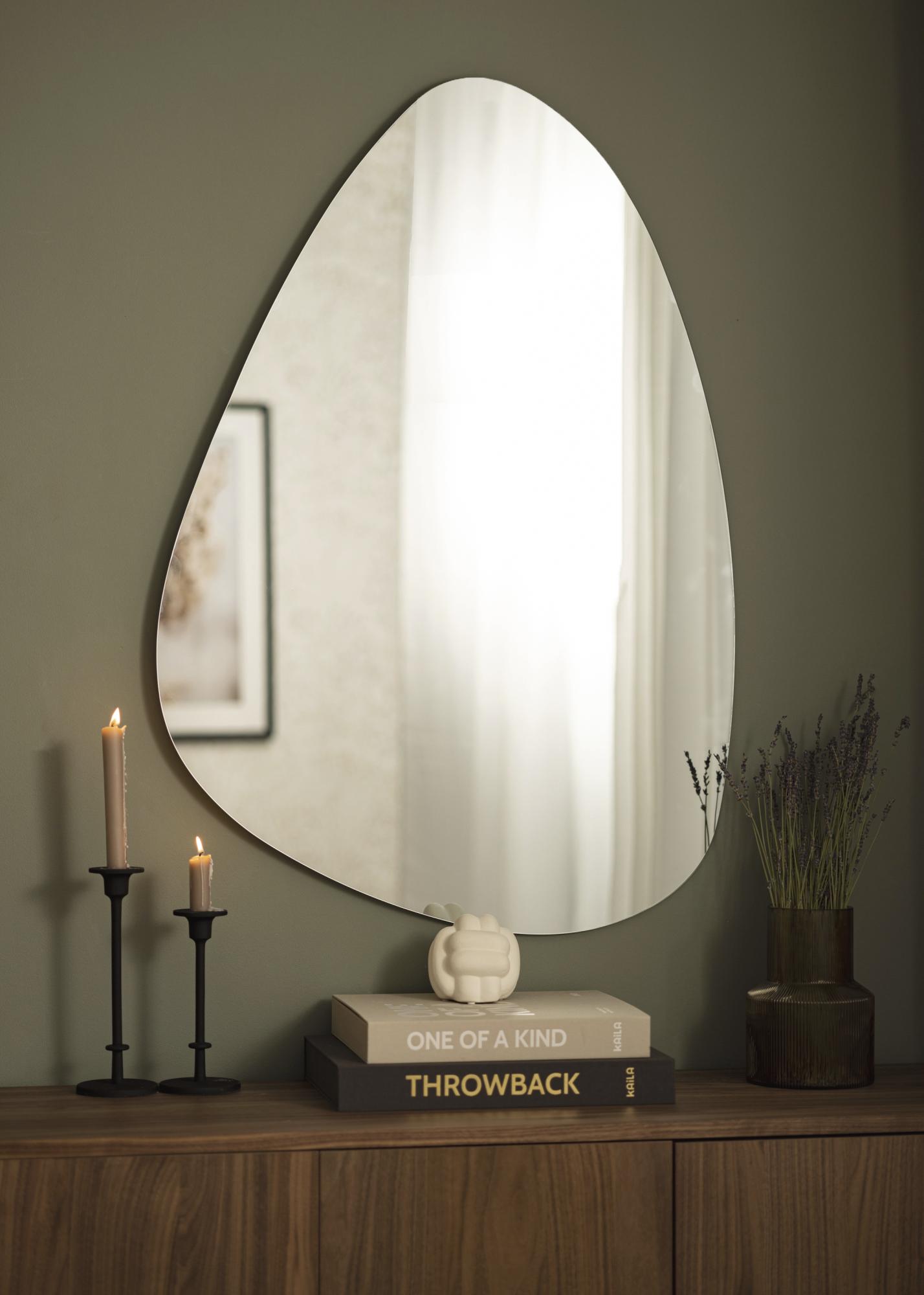 Táto zrkadlo je ideálne pre vás, ktorí hľadáte elegantné zrkadlo v minimalistickom štýle. Asymetrický tvar je skombinovaný s tenkým zrkadlovým sklom a okrajmi bez rámu, čo vytvára veľmi elegantný celok. Na zadnej strane sa nachádzajú nástenné úchyty.