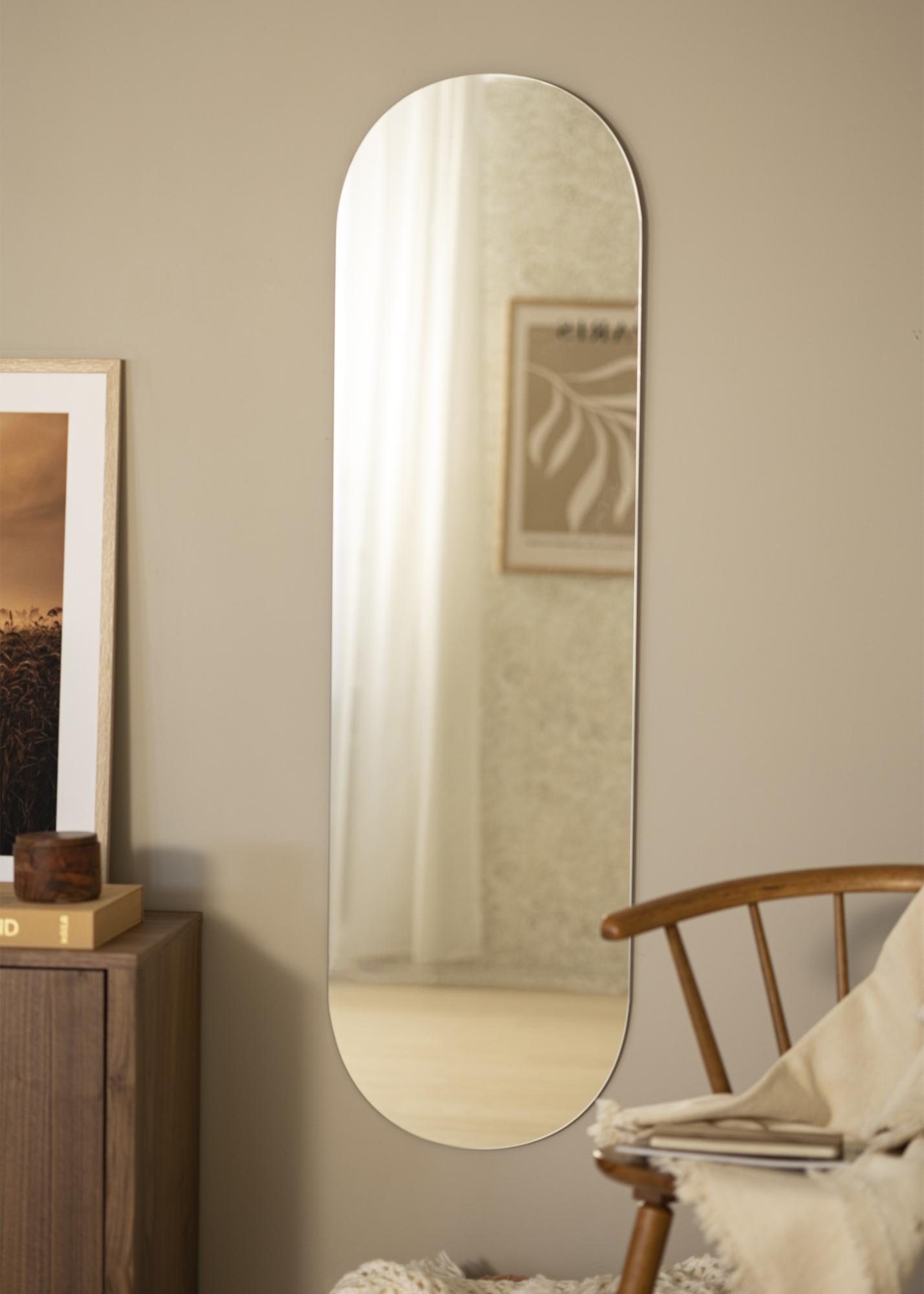 Objavte elegantné a všestranné nástenné zrkadlo navrhnuté tak, aby dopĺňalo všetky miestnosti vo vašom dome. So svojimi veľkorysými rozmermi 40x140 cm ponúka toto zrkadlo praktickú a dekoratívnu funkciu vo vašom priestore. Jeho organický a podlhovastý tvar s oblými okrajmi a jemným zakrivením na vrchu dodáva moderný a jemný vzhľad, ktorý zapadá do rôznych štýlov interiérov.