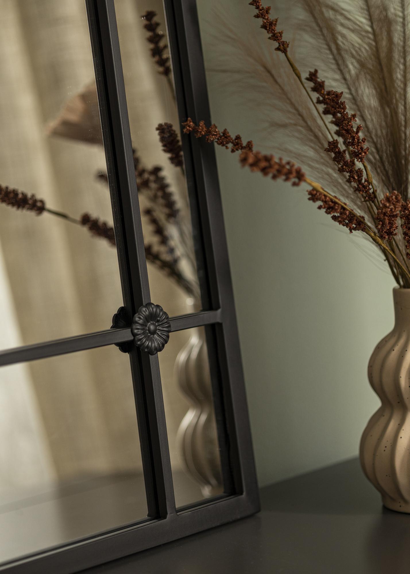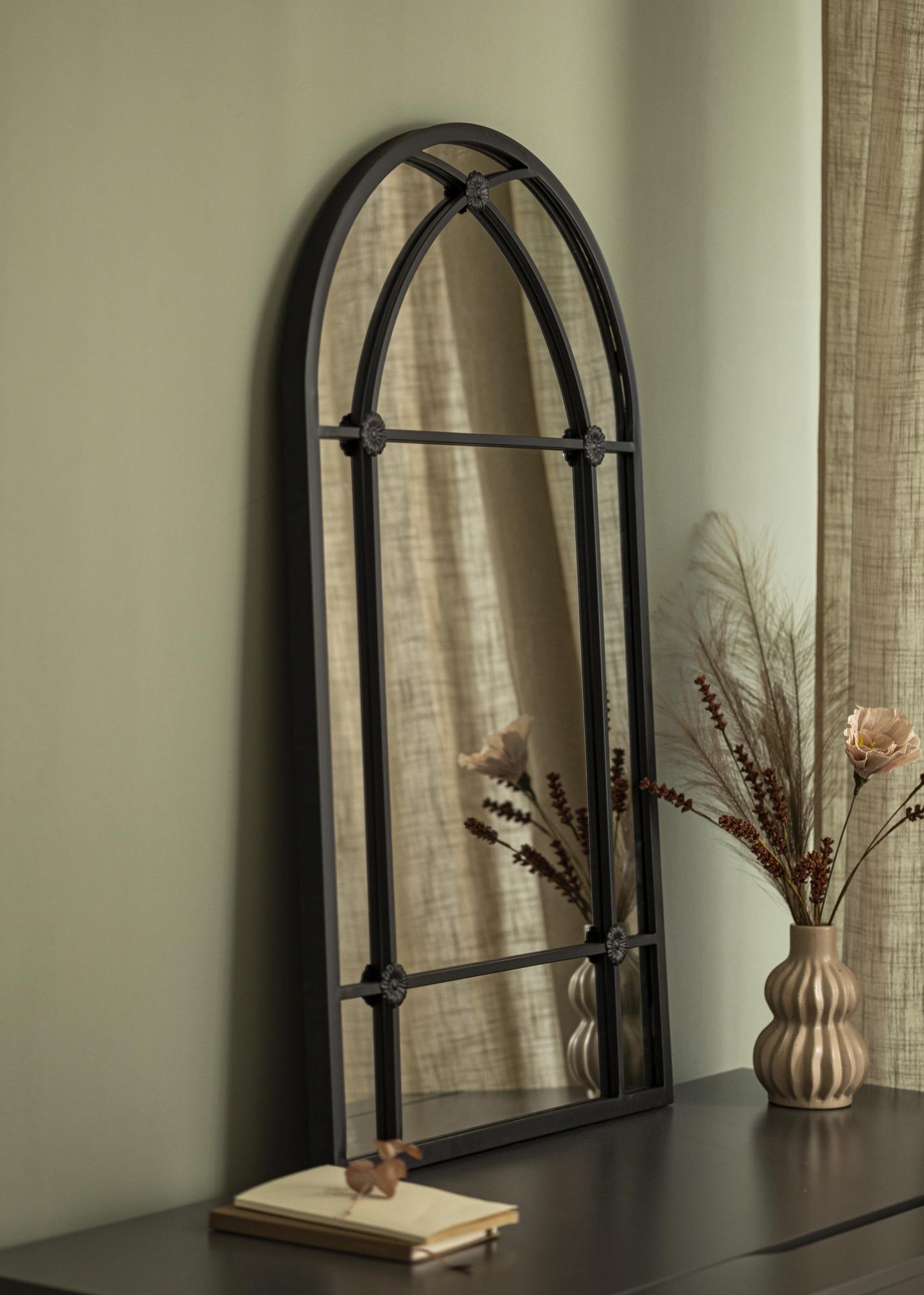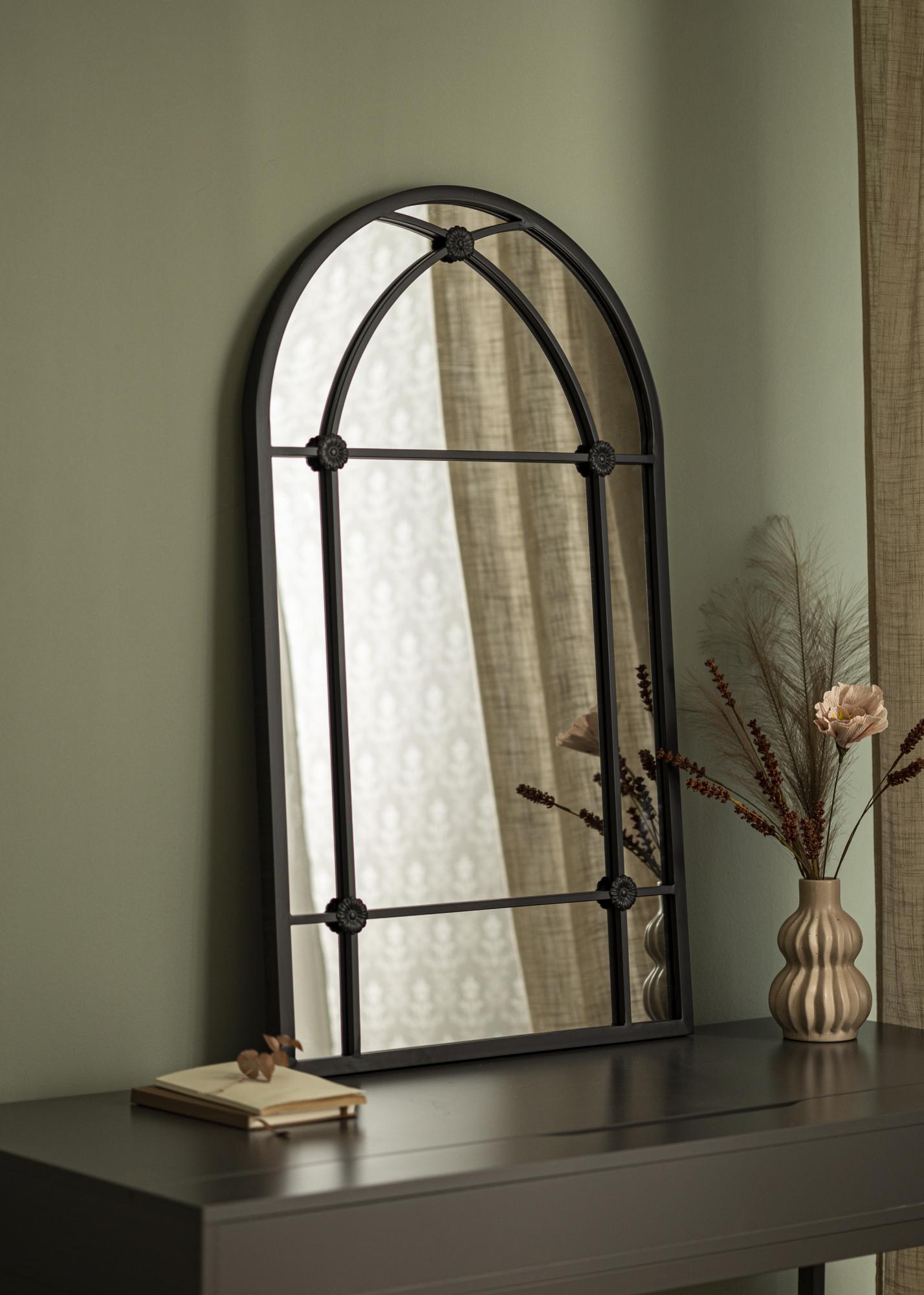 So svojou oblúkovitou siluetou a detailným železným spracovaním pripomína zrkadlo klasické okná, ktoré dávajú pocit hĺbky a priestoru v miestnosti. Nie je to len praktický predmet na každodenné použitie, ale aj umelecký dekoračný prvok, ktorý upúta pohľad a prispieva k atmosfére miestnosti.