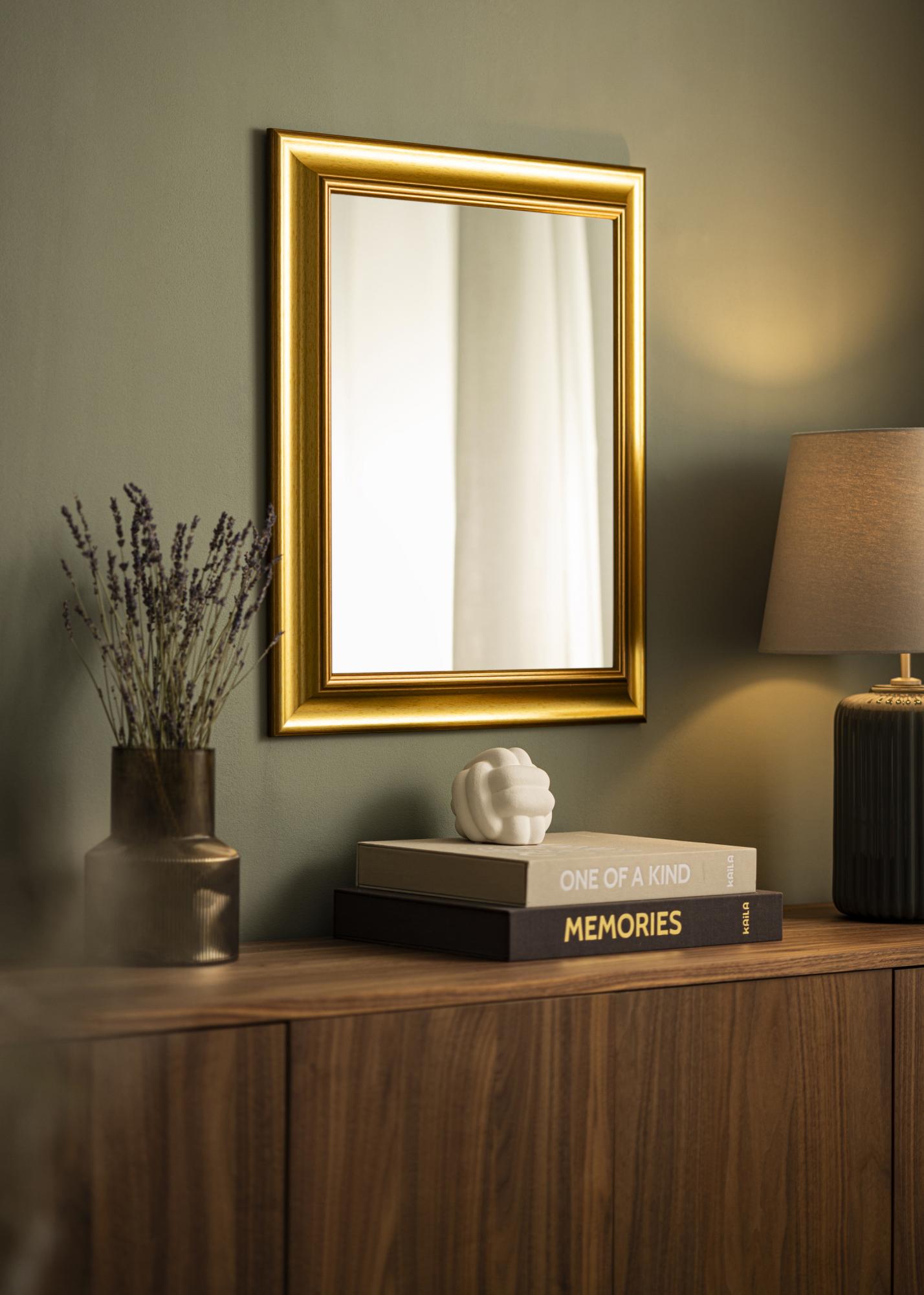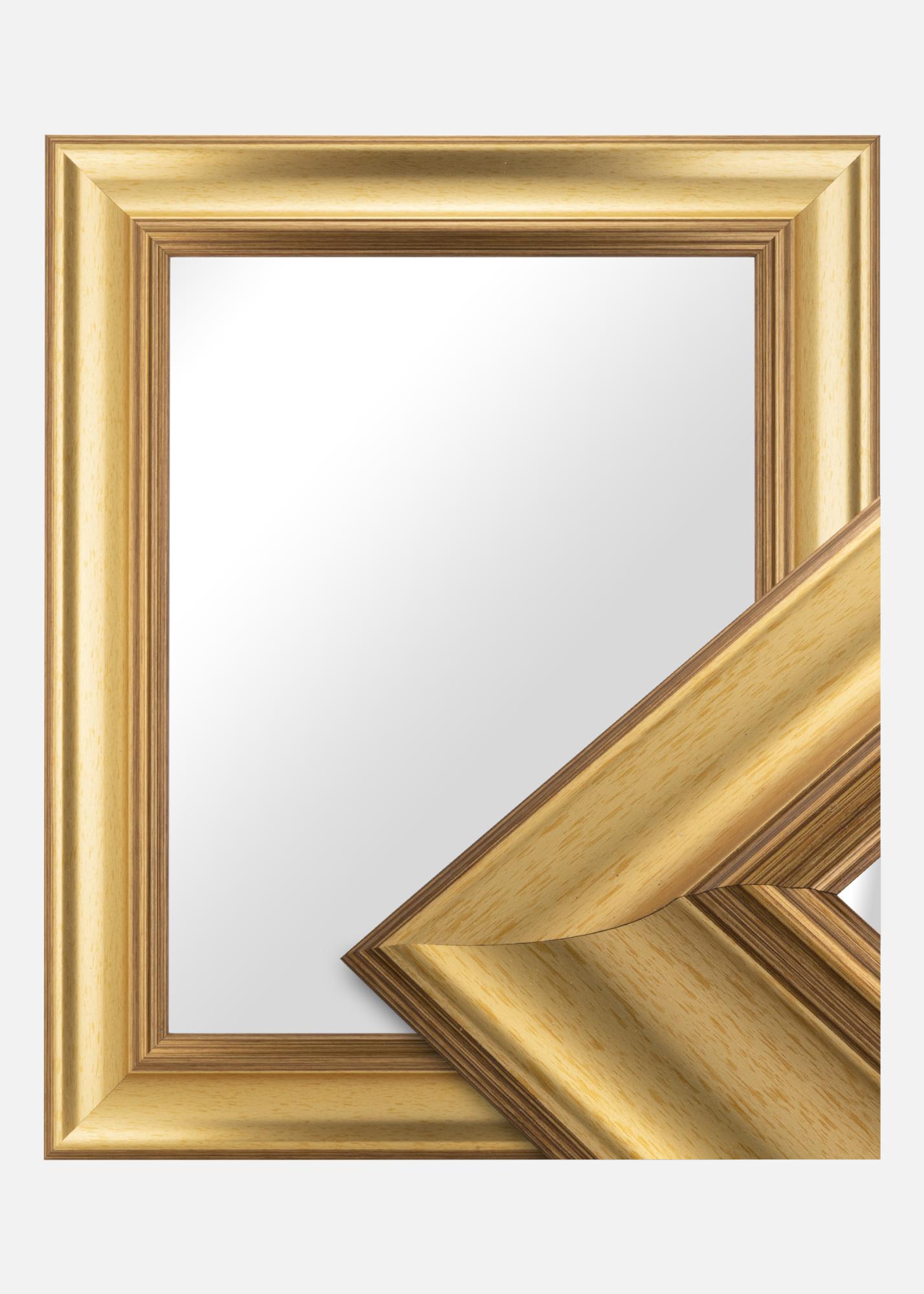 Zrkadlo Hampshire Zlato je zrkadlo na mieru, ktoré vyrábame, aby vyhovovalo práve vašim potrebám. So svojou elegantnou zlatou farbou a rámom širokým 64 mm sa stáva štýlovým prvkom v každej miestnosti. Hĺbka zrkadla 31 mm mu dodáva robustný pocit a zároveň sa ľahko začlení do vášho interiéru.