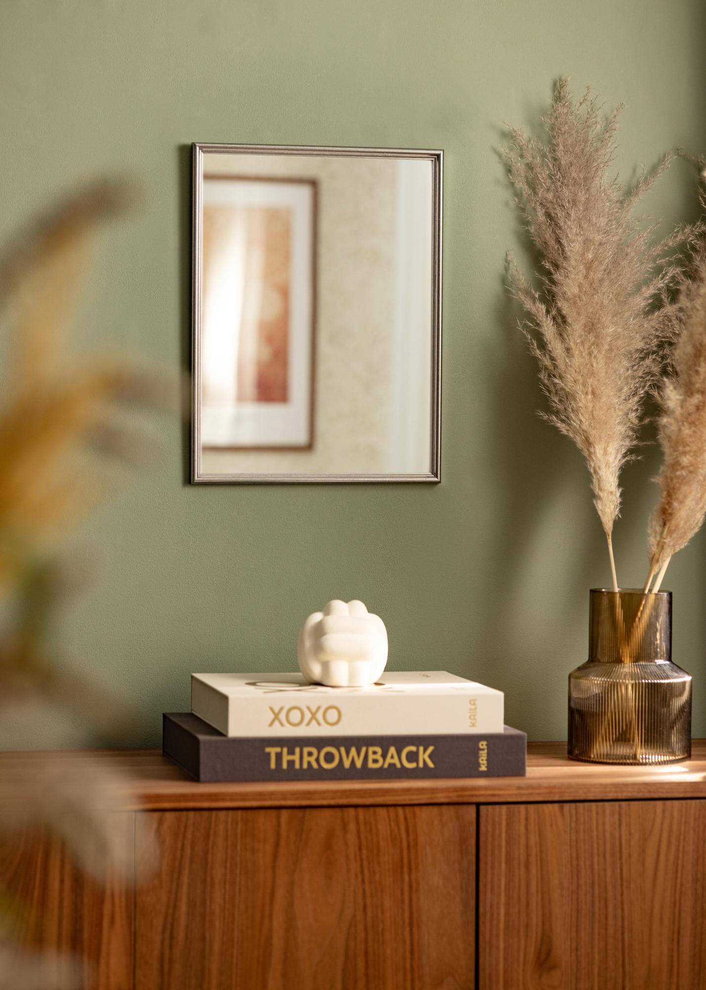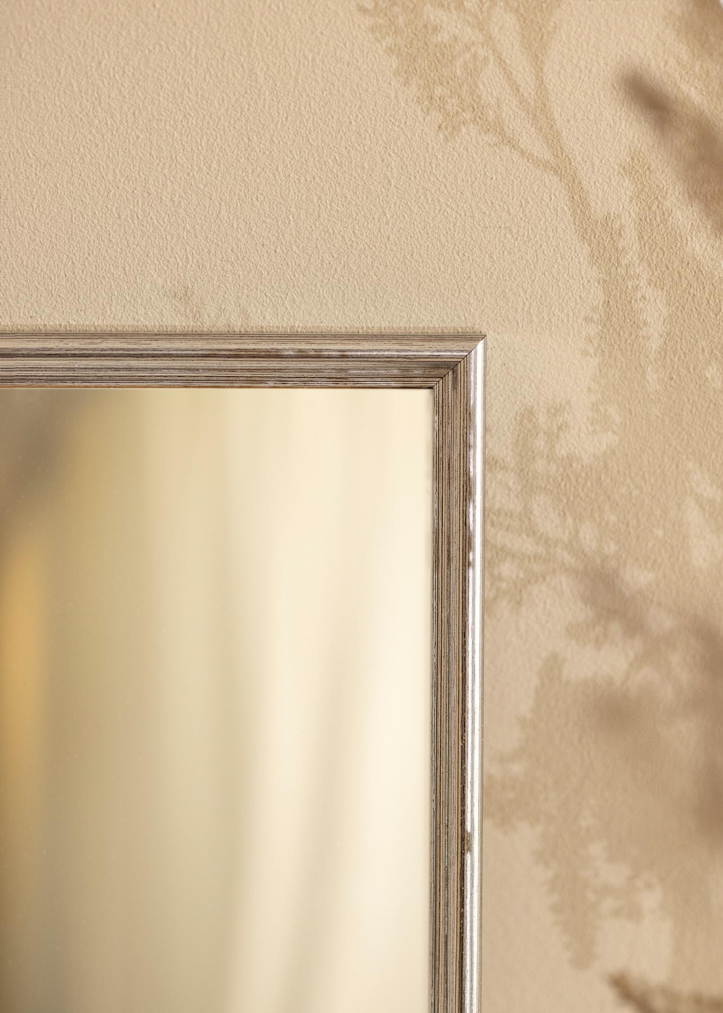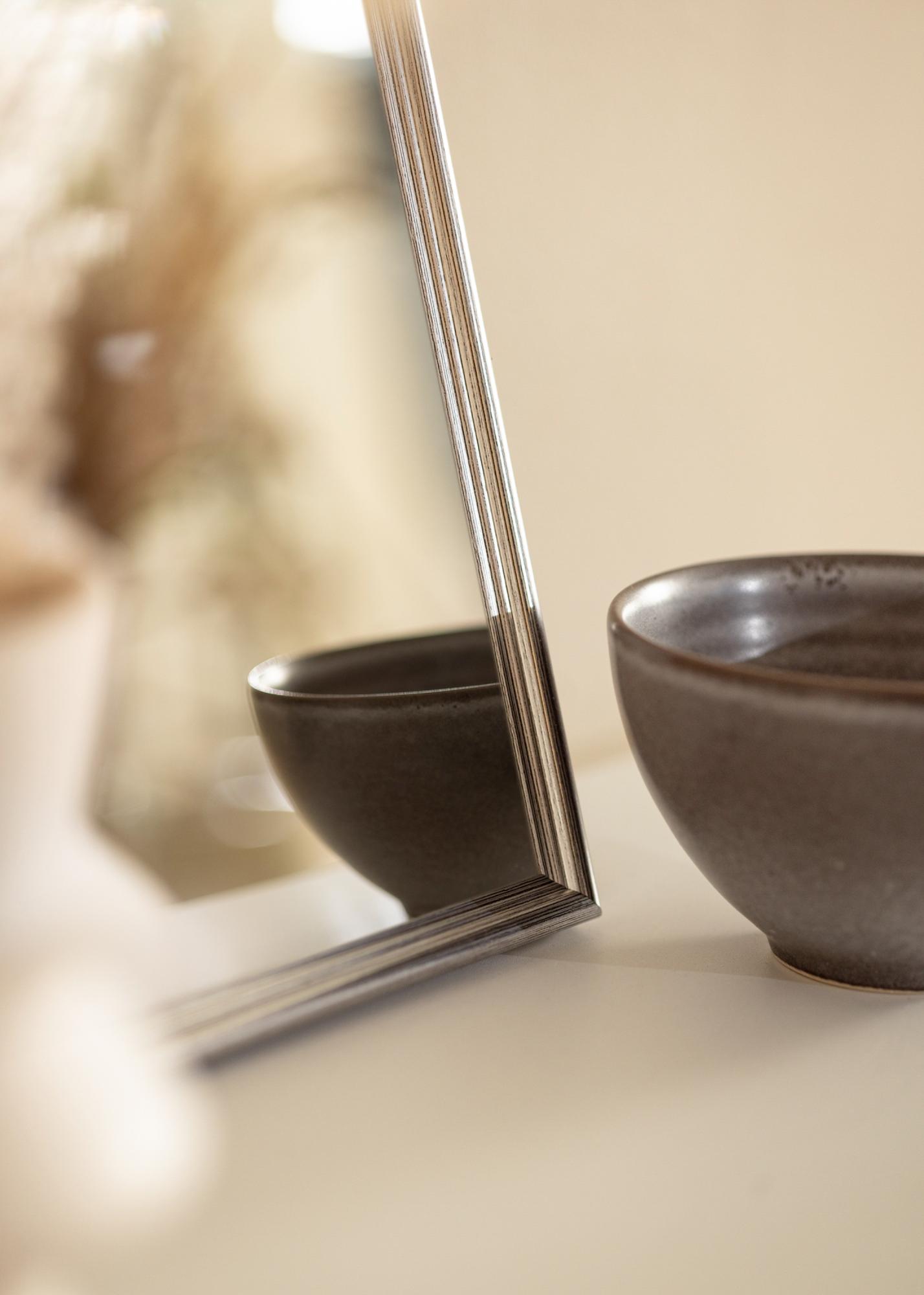 Poďme vyrobiť zrkadlo, ktoré dokonale zapadne do vášho domova! Toto pekné zrkadlo sa vyrába na vaše vlastné miery, aby ste si mohli byť istí, že bude správne. Zrkadlo má klasický profilovaný rám, ktorý je natretý lesklou striebornou farbou. Dobre sa hodí k interiérovým komponentom ako sú napríklad čierna, biela a fialová.