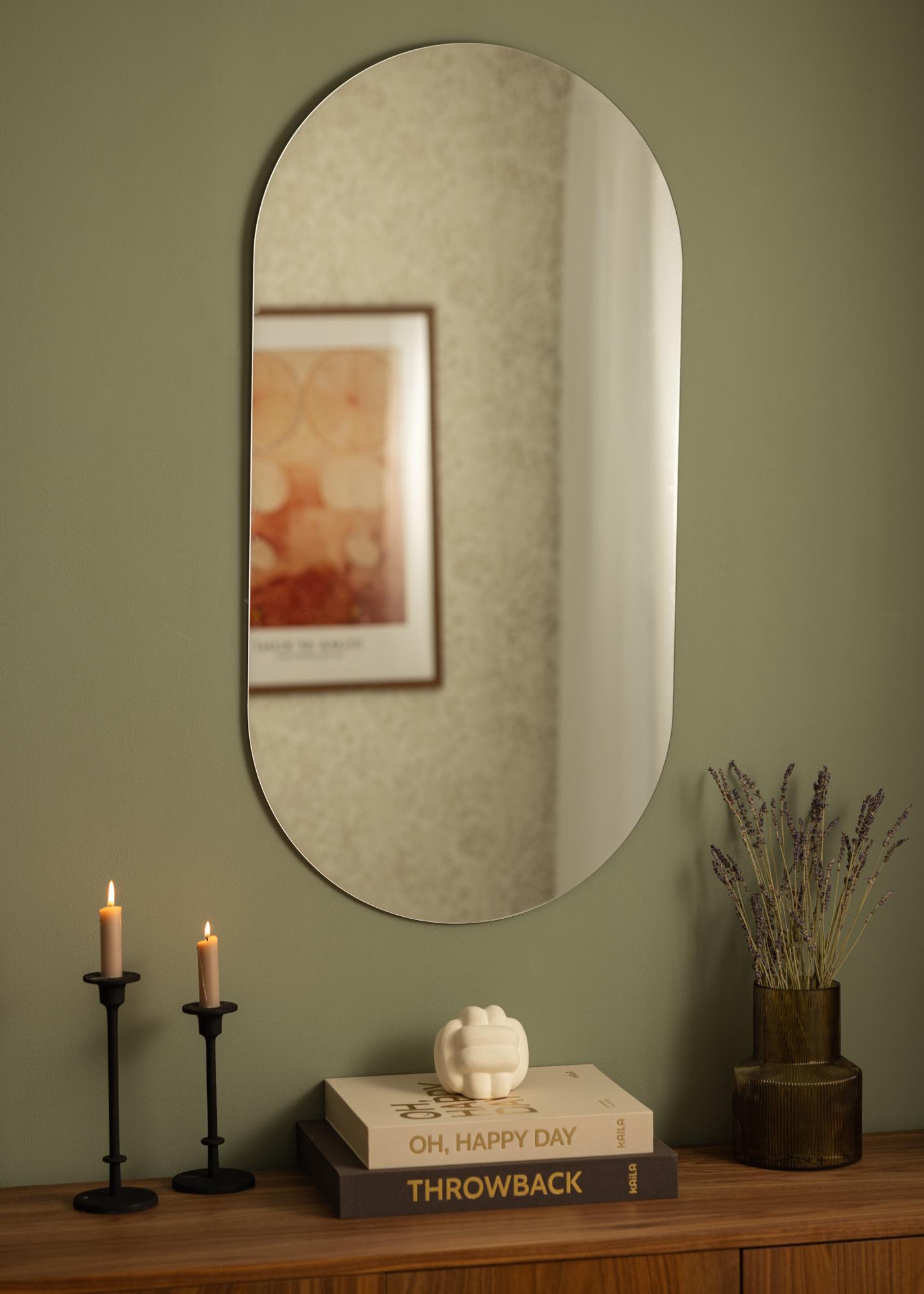 Podlhovastý, oválny tvar s hladkou a zaoblenou kontúrou dodáva miestnosti harmonický pocit. Dizajn zrkadla nie je len esteticky príťažlivý, ale aj funkčný, s možnosťou rozhodnúť sa, ktorá strana má byť hore alebo dole, aby vyhovovala práve vášmu interiéru. Nech ho umiestnite kdekoľvek, toto zrkadlo sa stane oceneným detailom vo vašej domácnosti.