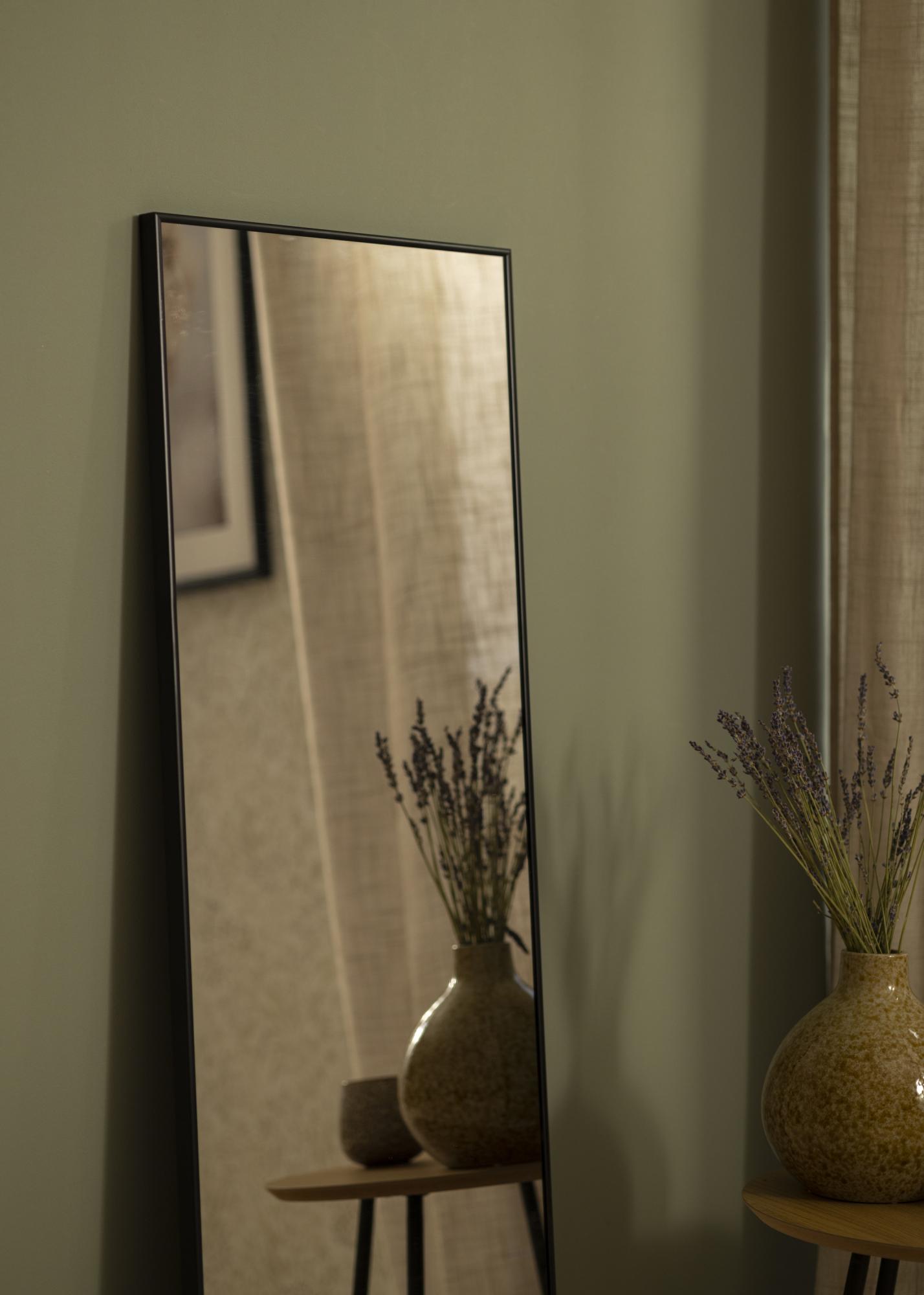 So svojou stojacou orientáciou sa zrkadlo perfektne hodí do úzkych priestorov alebo ako zrkadlo v plnej dĺžke v spálni alebo v hale. Čierny rám dopĺňa rôzne štýly interiéru a farebné schémy, vďaka čomu je všestranným interiérovým doplnkom. Zrkadlo nie je len krásnym detailom, ale aj praktickým nástrojom na vytvorenie svetla a priestoru vo vašom dome.