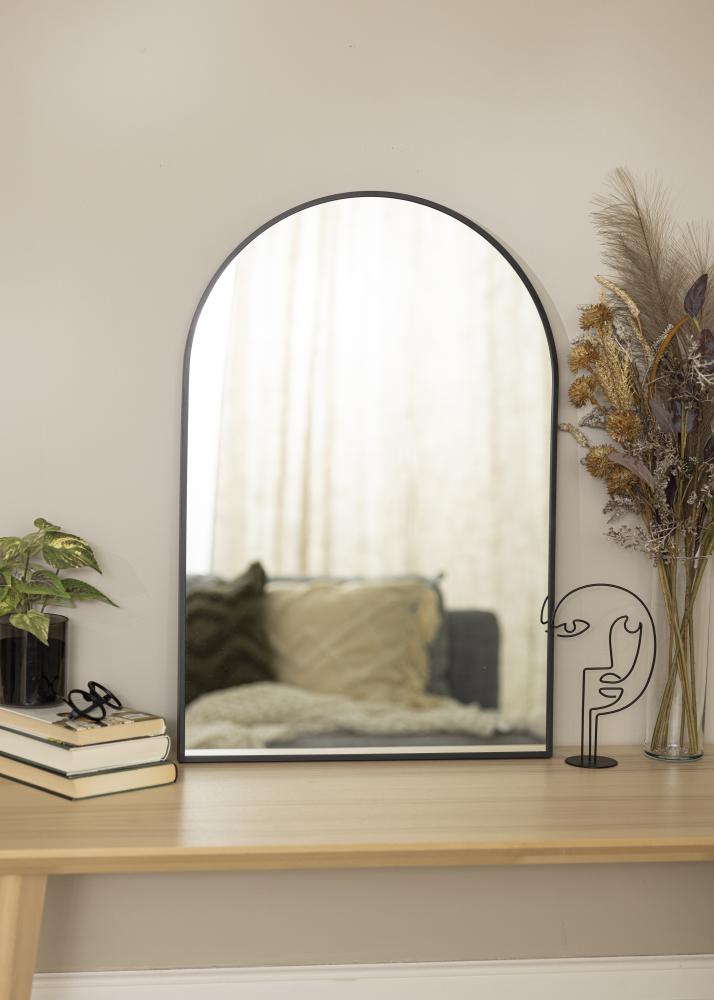 Toto je vynikajúca voľba pre vás, ak hľadáte zrkadlo v modernom dizajne s trendovým oblúkovým prevedením a štýlovým čiernym rámom. Rám zrkadla má hĺbku 28 mm a je vyrobený z kovu. Toto zrkadlo sa stane neodmysliteľným dekoratívnym prvkom v hale alebo obývacej izbe, kde krásne odrazí svetlo zo všetkých svetelných zdrojov v miestnosti. Robustný materiál umožňuje jeho použitie aj v kúpeľni.