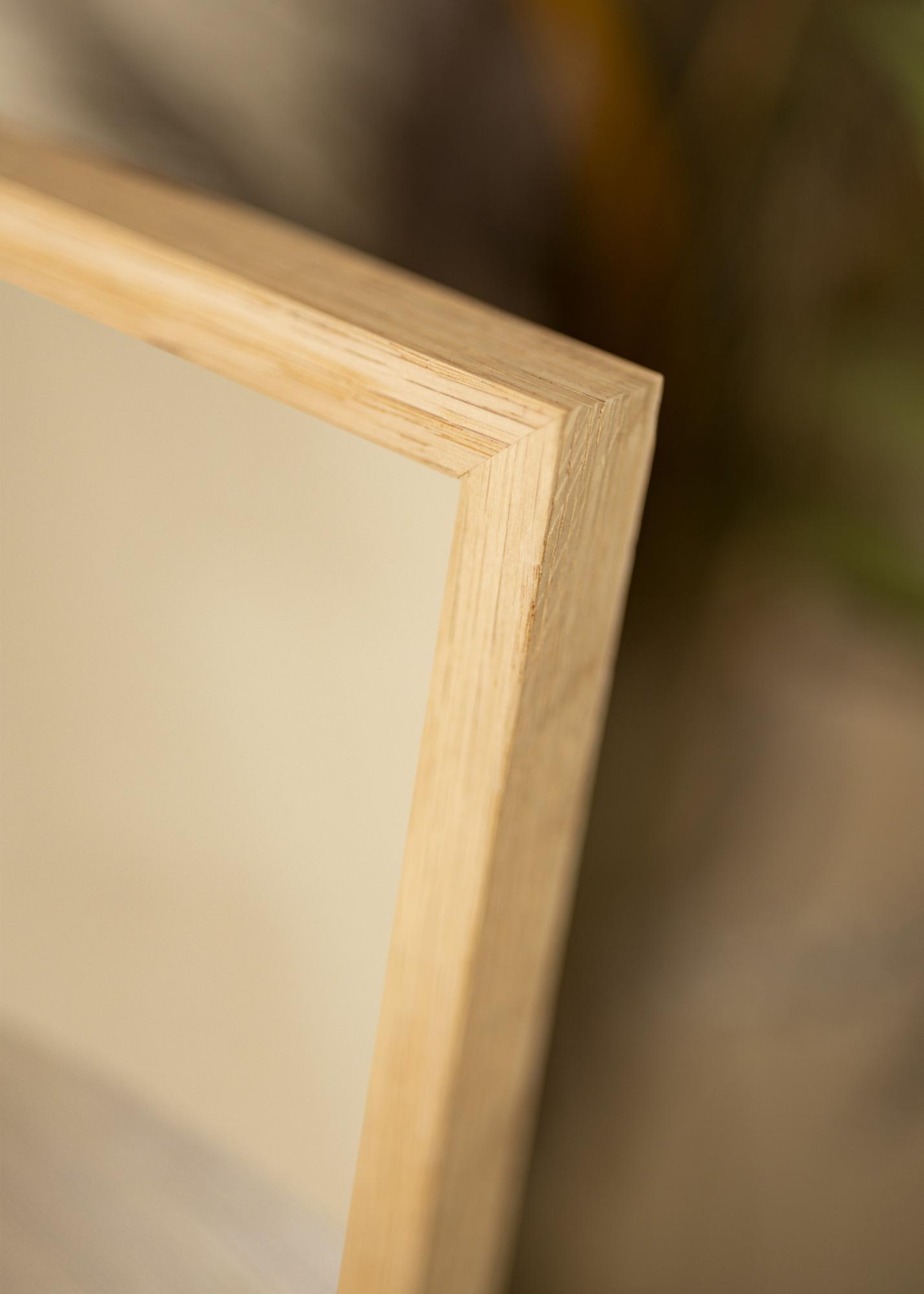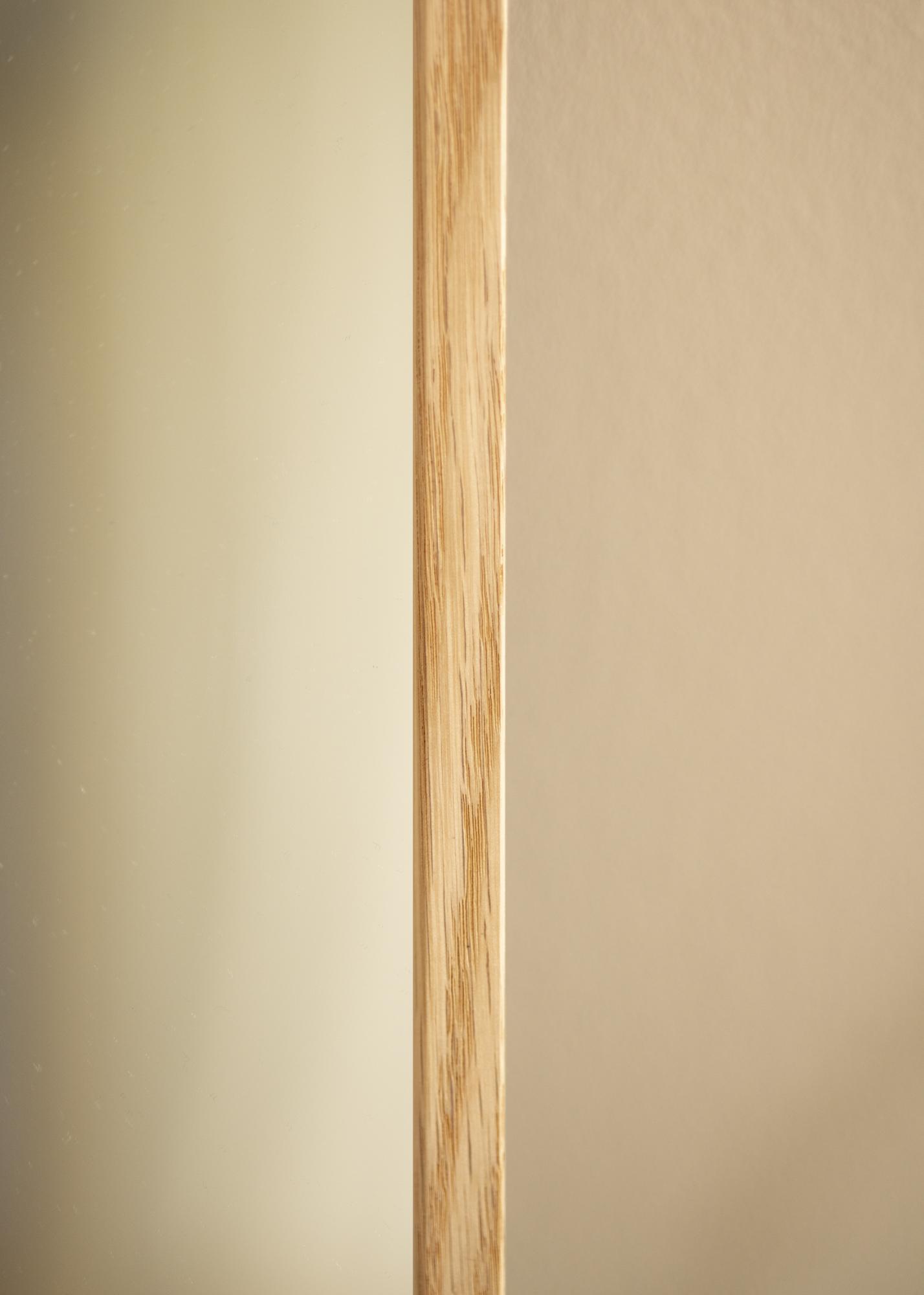 Drevený rám so šírkou 12 mm dáva zrkadlu elegantný rám bez toho, aby zaplnil miestnosť. Jeho jemný dizajn umožňuje, aby zrkadlo splývalo s väčšinou prostredí, pričom zároveň dodáva pocit priestoru a svetla. So svojou hrúbkou 18 mm má zrkadlo robustnú konštrukciu, ktorá zaručuje jeho stabilné zavesenie na stene.