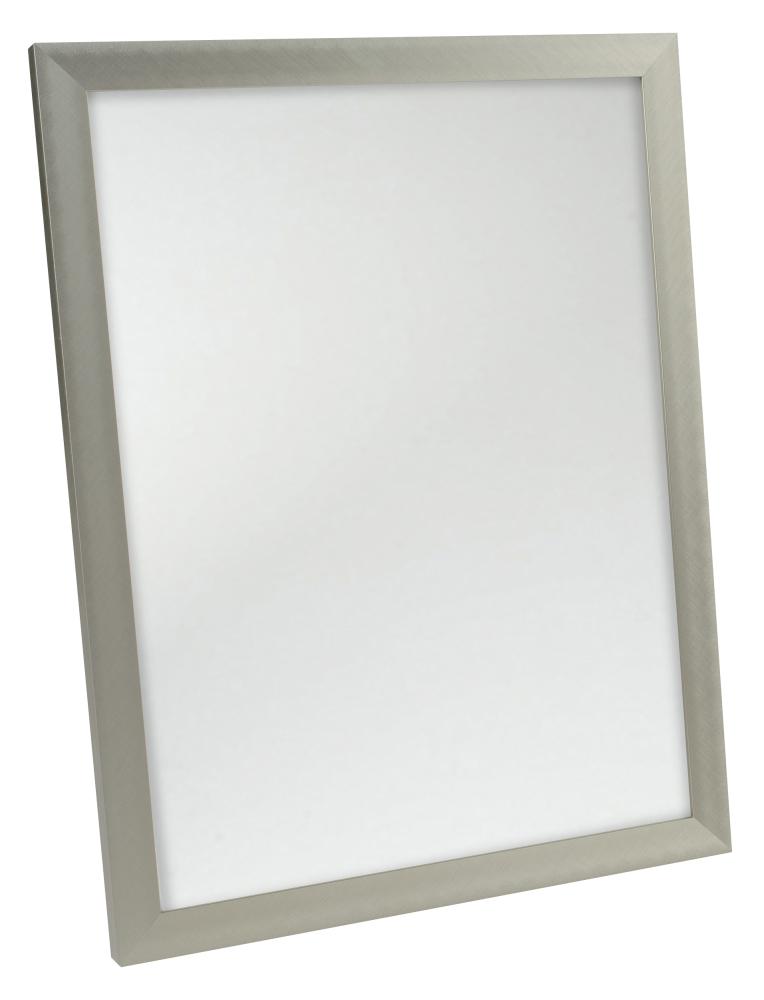 Štýlové moderné zrkadlo s rámom z brúseného hliníka, ktoré skvele zapadne do každého domova s čistým interiérom. Sivý kov pôsobí chladným dojmom a zrkadlo zaujme diskrétne miesto na stene bez toho, aby súťažilo s inými dekoratívnymi doplnkami. Napriek svojmu štíhlemu dizajnu sa zdá byť pevné a stabilné. Radi kombinujte zrkadlo s inými interiérovými predmetmi z kovu a fotografiami alebo grafikami v podobných rámoch, aby ste vytvorili celkový dojem v miestnosti.