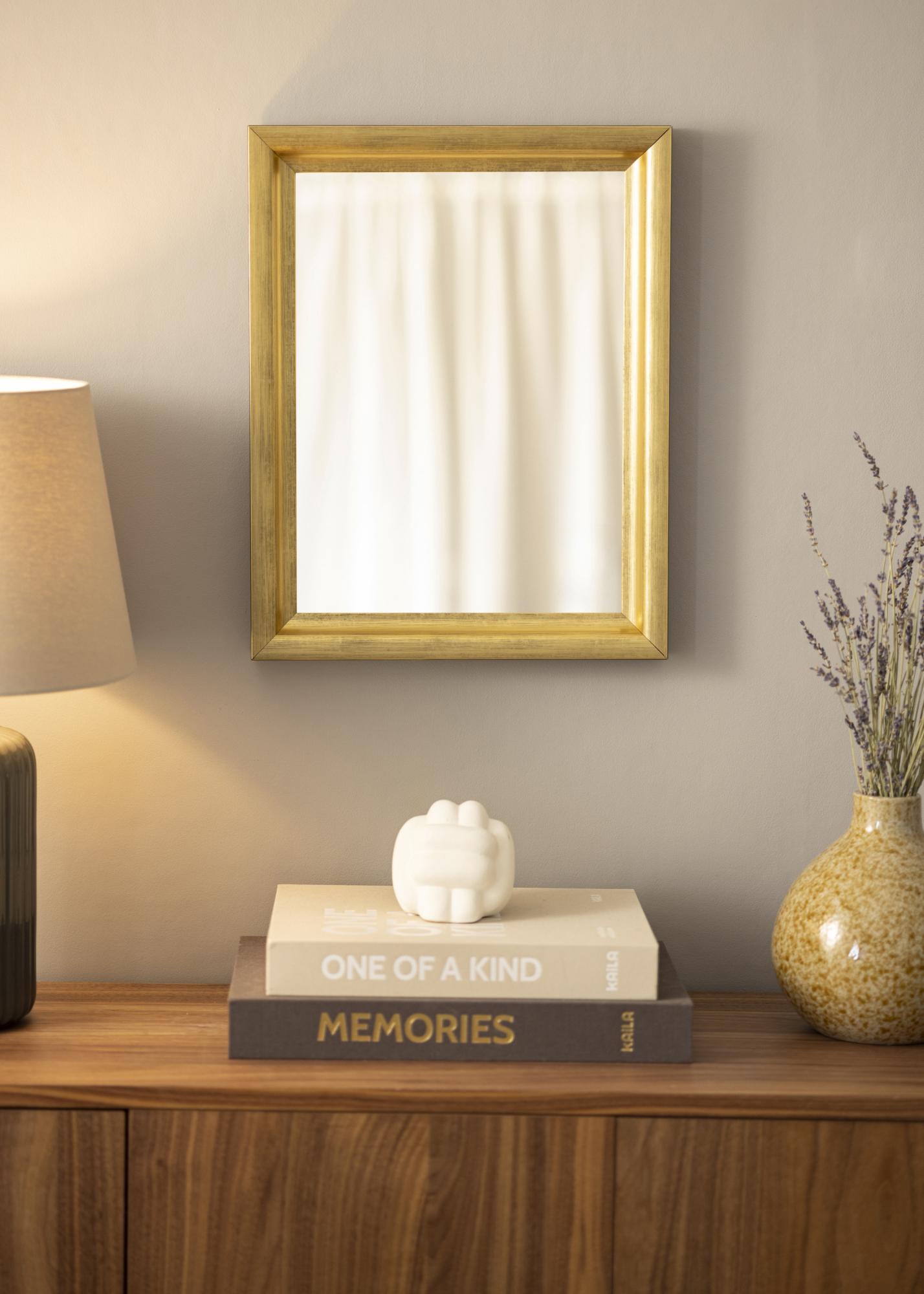 Klasické zrkadlo, kde si sami vyberiete, aké veľké zrkadlo chcete mať. So svojím širokým a hlbokým profilom je to určite zrkadlo, ktoré si všimnete. Zrkadlo má jemný príjemný zlatý tón, ktorý dodáva útulný a krásny pocit.