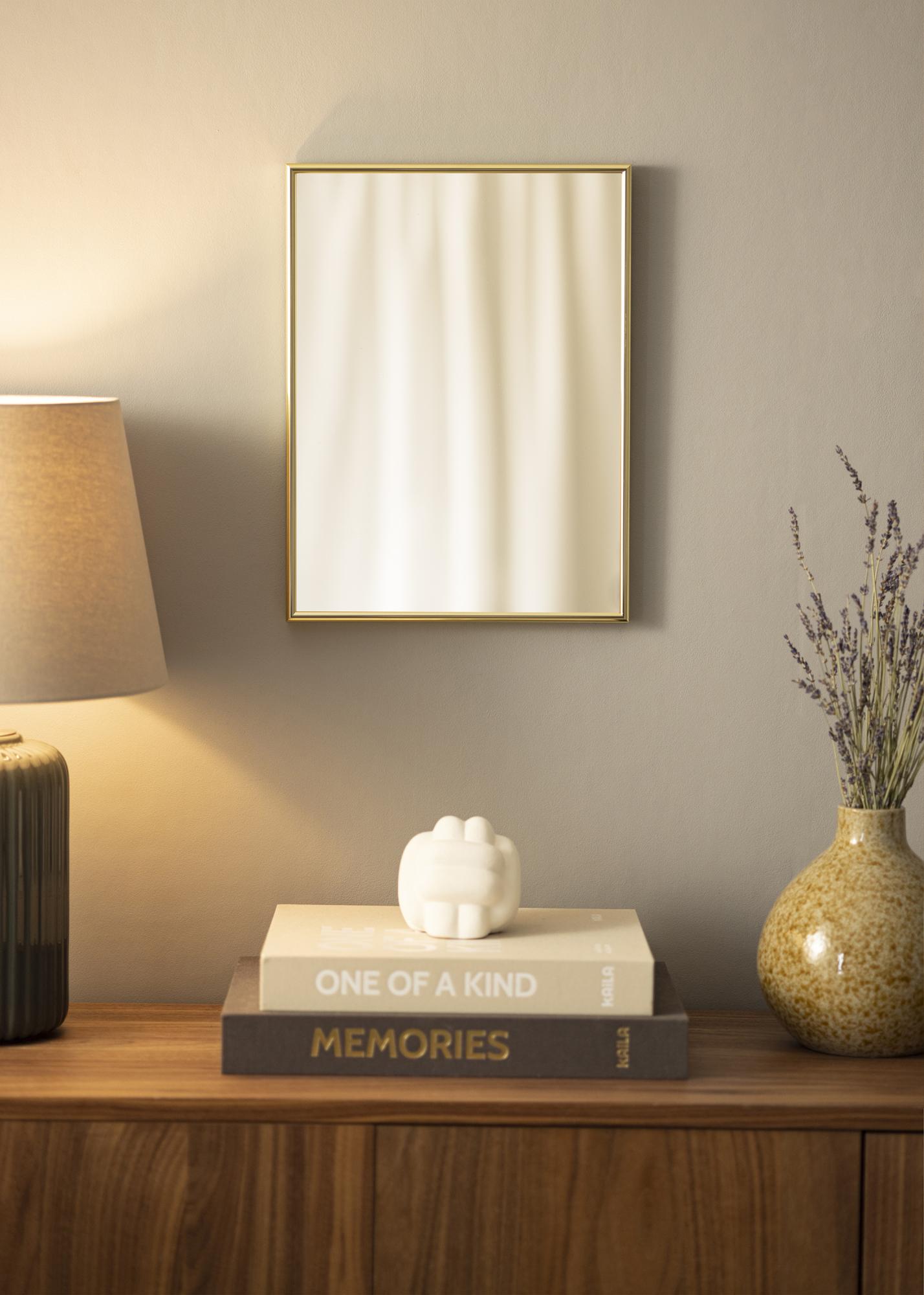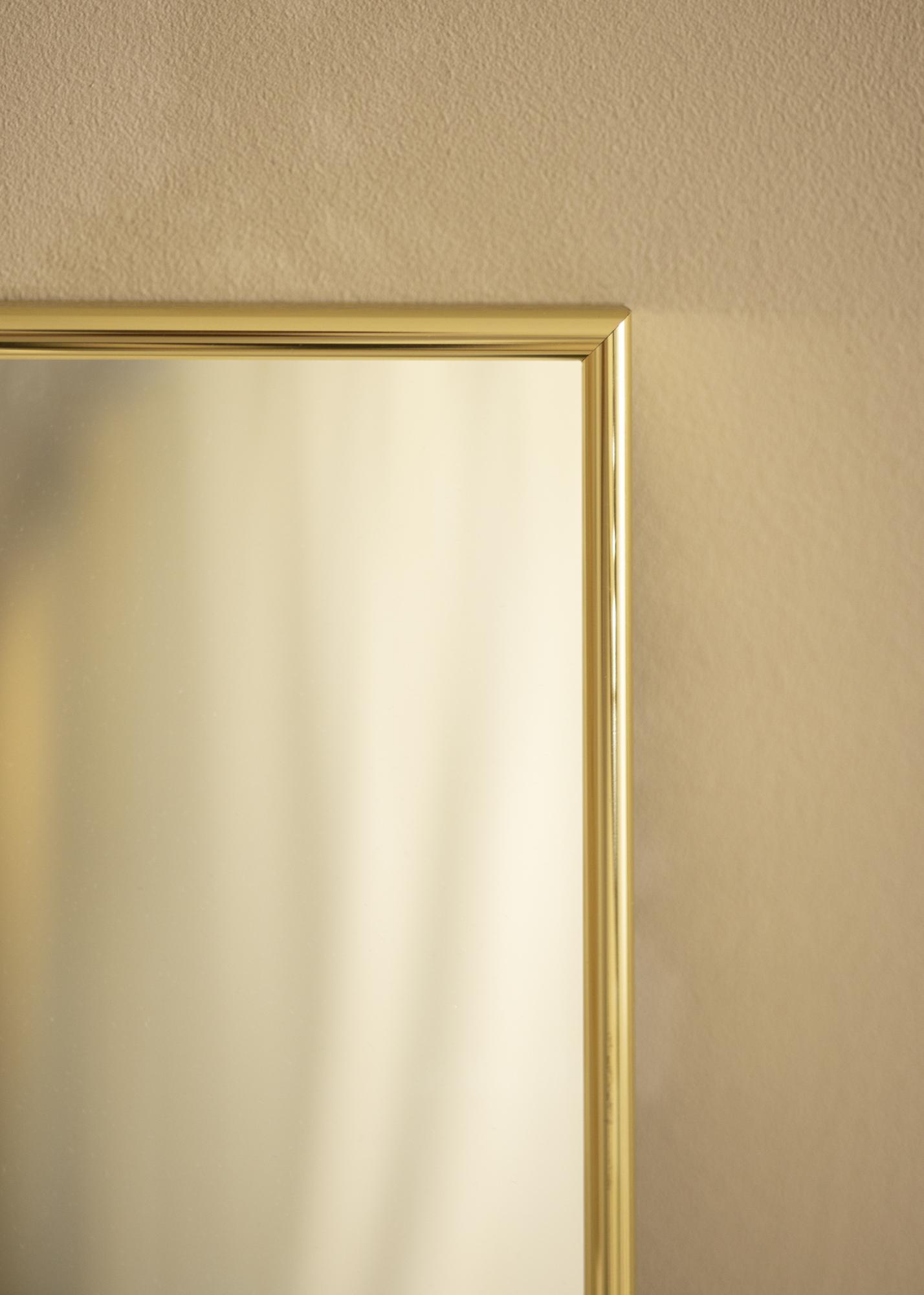 Sandhamn dodáva vášmu zrkadlu exkluzívny rám s jeho vysokolesklým zlato zafarbeným kartáčovaným profilom s hĺbkou celých 26 mm, čo spôsobuje, že vaše zrkadlo vystupuje kúsok od steny.