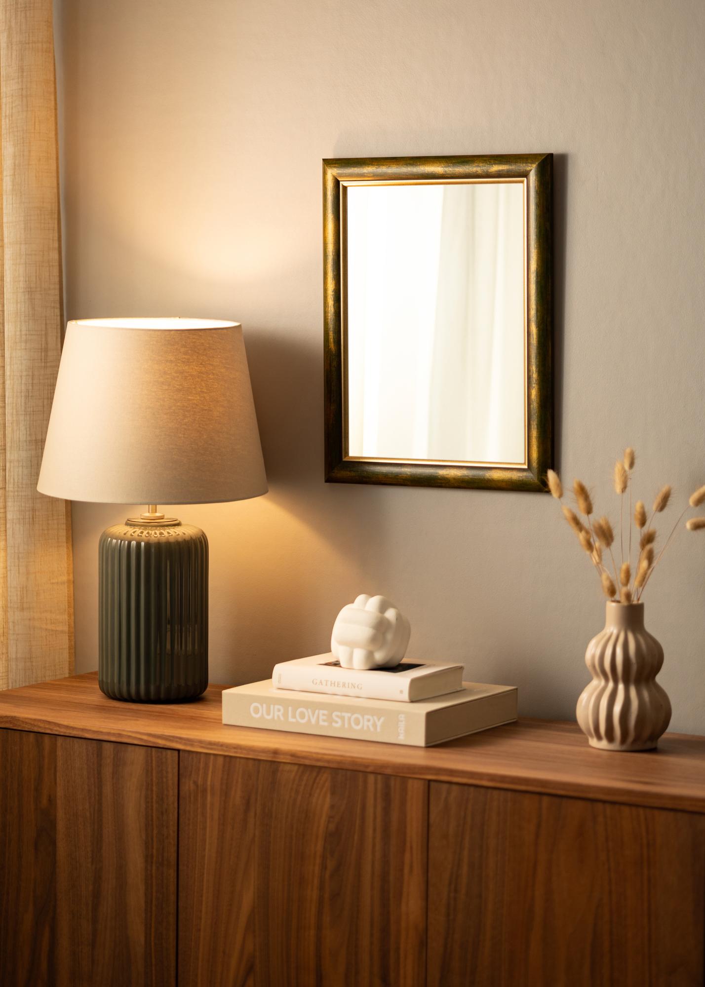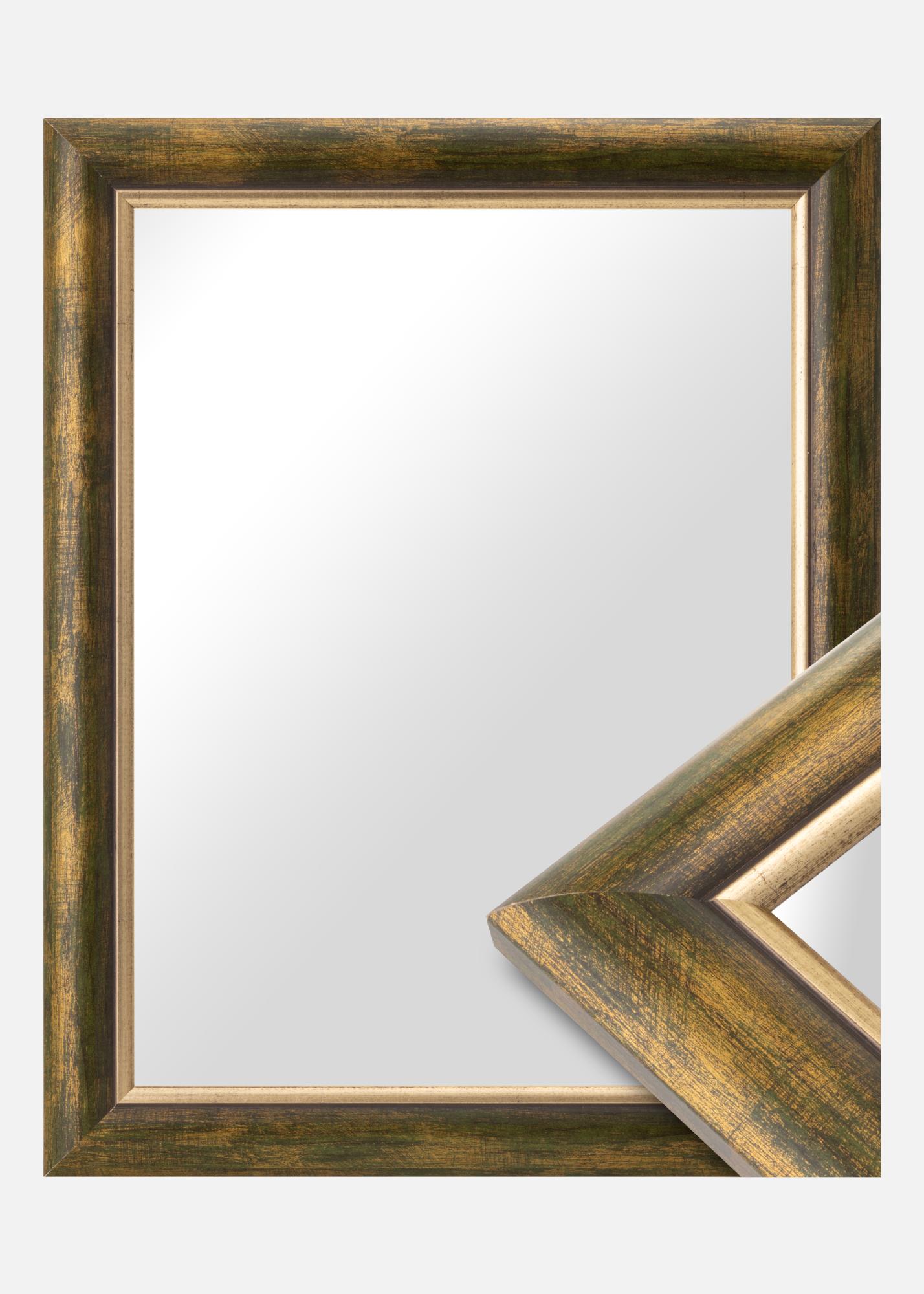 Nadčasová drevená lišta vyrobená vo Fínsku s pekným zeleným odtieňom dreveného povrchu a zlatým okrajom najbližšie k zrkadlovému sklu. Rám má široký profil s celkovou šírkou 41 mm a hĺbkou 19 mm, čo dodáva vášmu zrkadlu extra hĺbku.