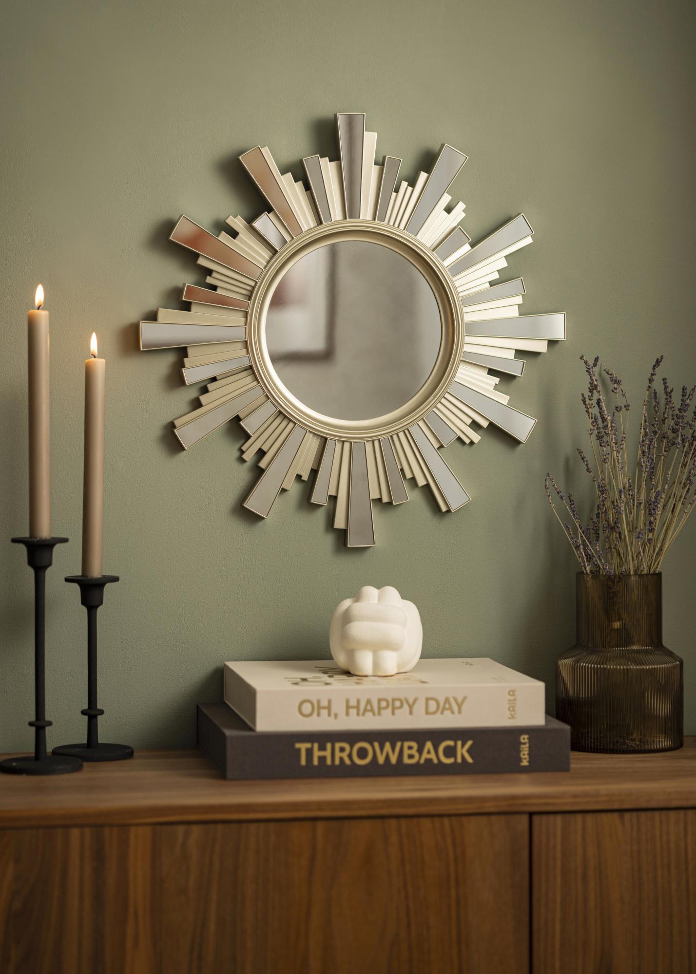 Umiestnite zrkadlo na miesto, kde bude viditeľné a uplatní sa jeho dekoratívna hodnota – v obývačke, v jedálni alebo možno v hale. Slnečné zrkadlo môže byť na stene samostatne alebo spolu s inou krásnou nástennou dekoráciou.