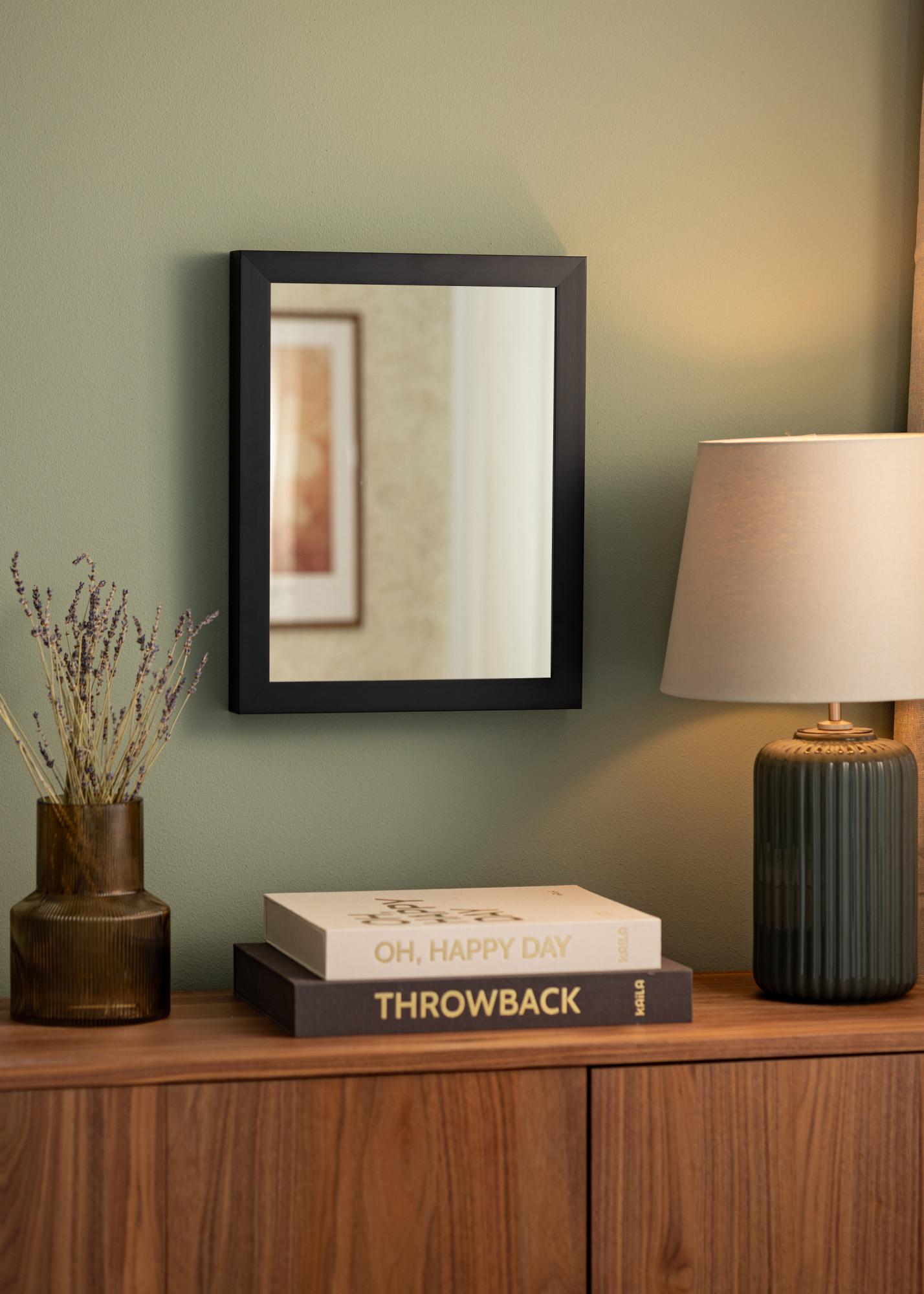 Toto zrkadlo má elegantnú čiernu farbu, ktorá dodáva sofistikovaný a štýlový dojem v každej miestnosti, v ktorej je umiestnené. 30 mm široká rámová lišta obklopuje zrkadlo vkusným spôsobom a prispieva k jeho modernému vzhľadu. So šírkou 50 mm získa zrkadlo robustný pocit pri zachovaní svojej elegancie.