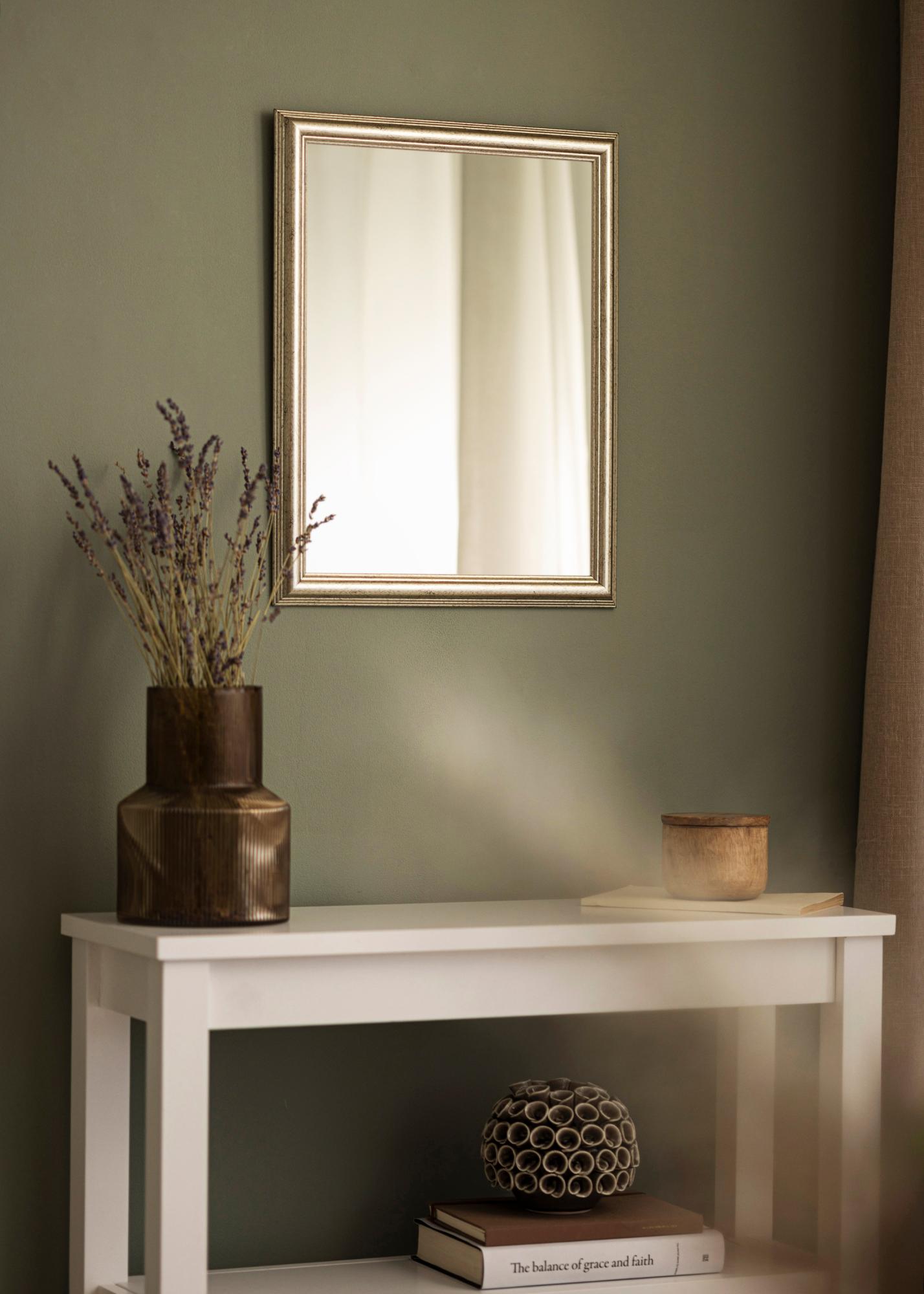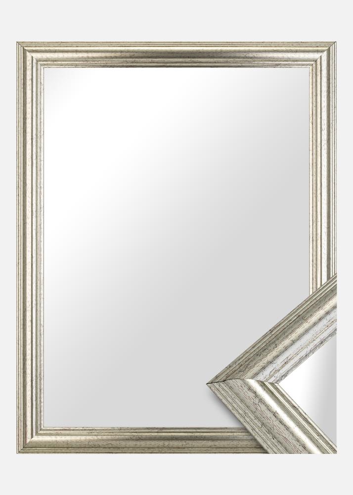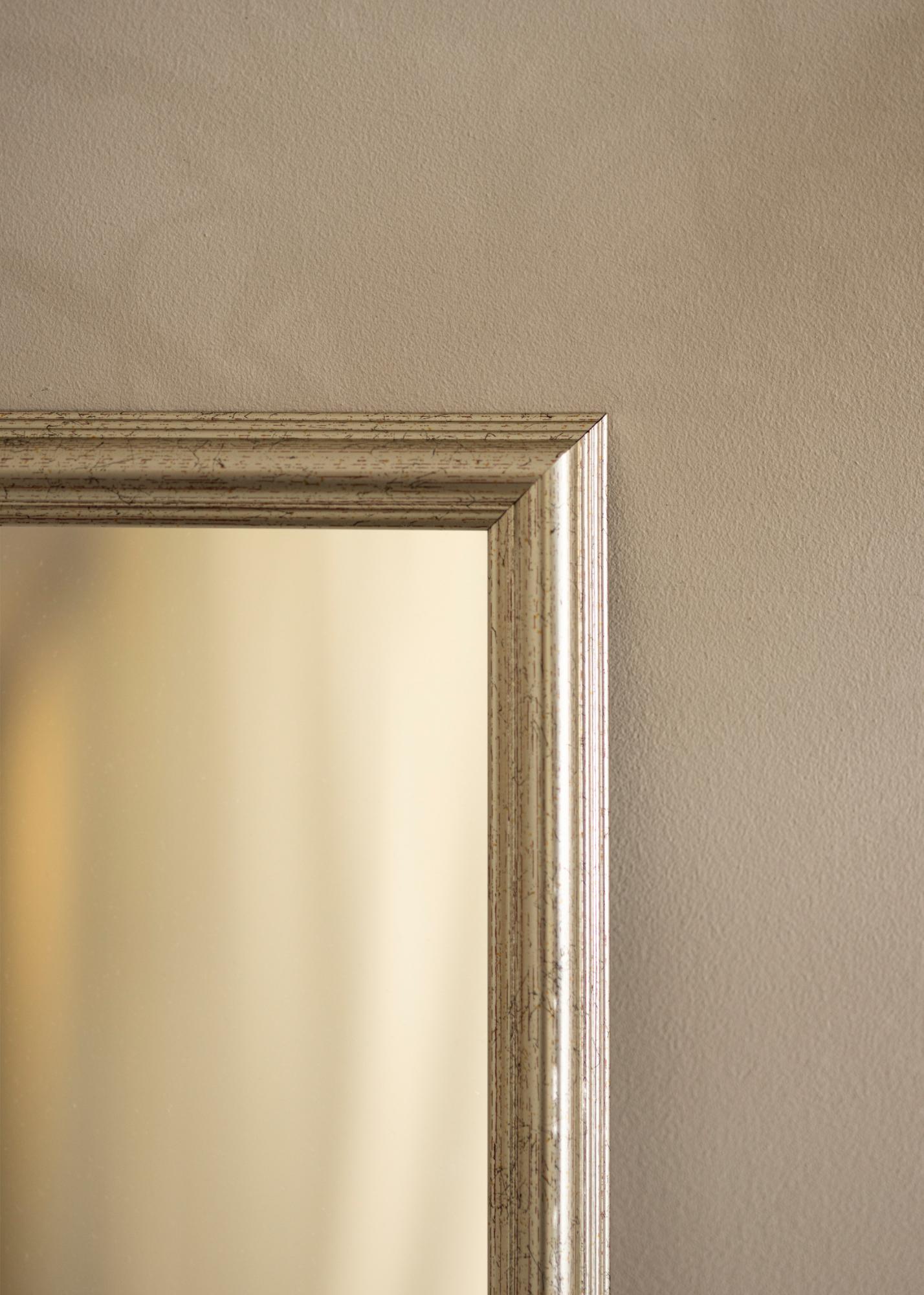 Štýlové strieborné zrkadlo, ktoré sa stane prirodzenou súčasťou vášho interiéru. Perfektné, keď hľadáte zrkadlo s nádychom elegancie.