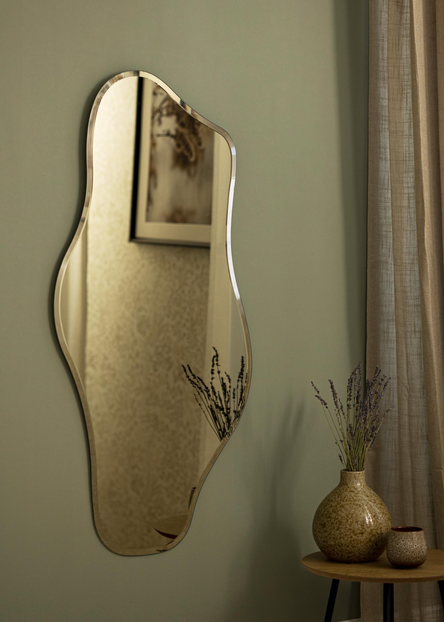 Objavte zrkadlo, ktoré kombinuje funkciu s výnimočným dizajnom – naše zrkadlo s vlnovým tvarom je skutočným pútačom pozornosti. So svojimi veľkorysými rozmermi 55x110 cm ponúka priestrannú odrazovú plochu, ktorá sa dokonale hodí do predsiene, ako aj do spálne alebo obývacej izby. Tvar tohto zrkadla je unikátny a vlnitý, čo dáva miestnosti jemný a dynamický dojem.