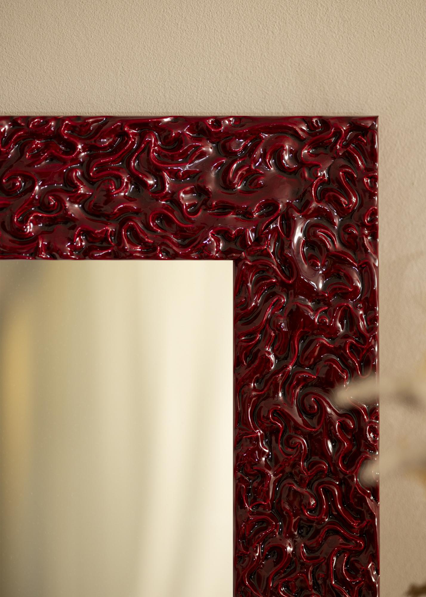 Zrkadlo Westminster Červené je zrkadlo na mieru, ktoré vyrábame na splnenie vašich potrieb. So svojou výraznou a živou červenou farbou sa stane neprehliadnuteľným prvkom v akejkoľvek miestnosti. Lakovaný povrch dáva zrkadlu lesklý finiš, ktorý zvýrazňuje jeho jedinečnú, organickú reliéfovú štruktúru. To vytvára dramatický a moderný vzhľad, ktorý určite pritiahne pohľady.
