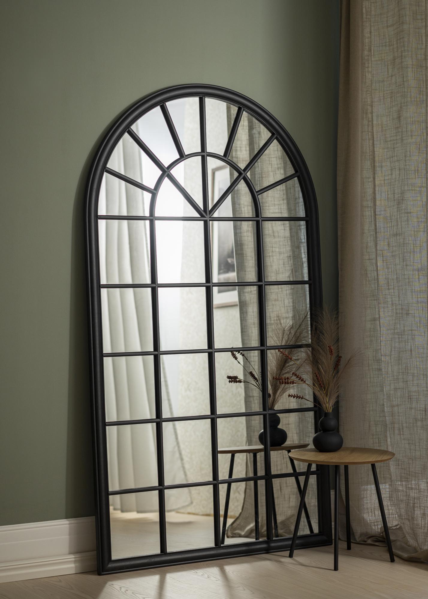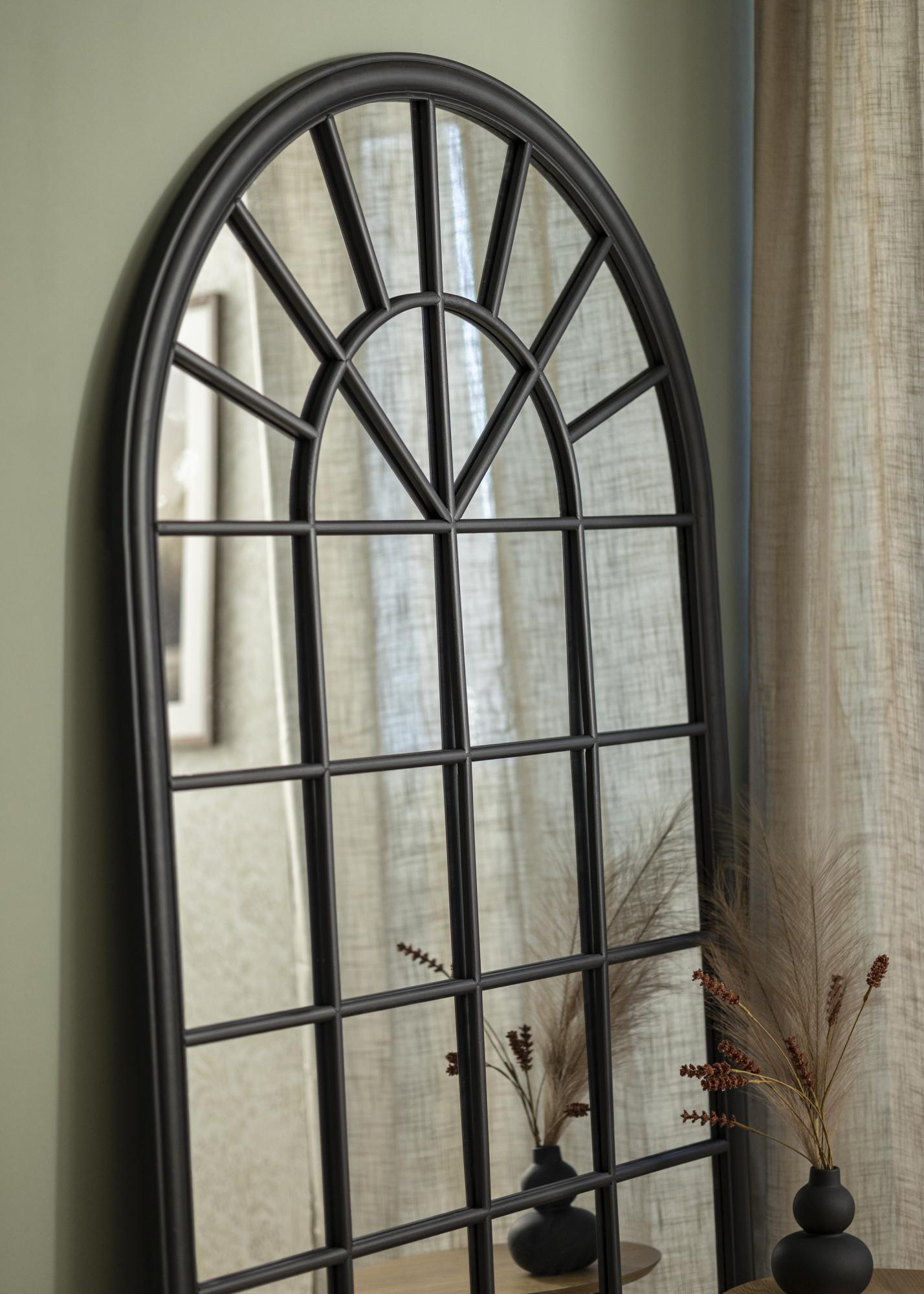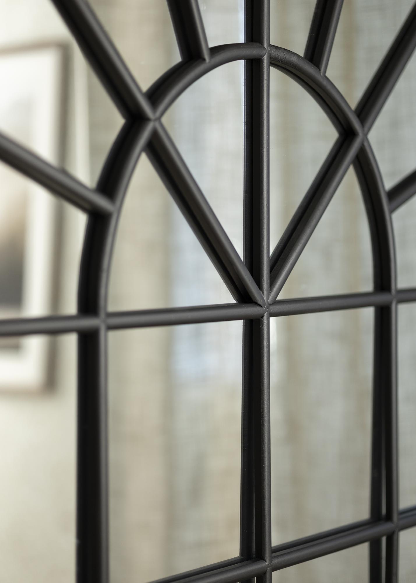 Objavte majestátnu prítomnosť nášho jedinečného zrkadla, skutočného pútavého prvku pre každú miestnosť. S jeho veľkorysými rozmermi 103x180 cm ponúka toto zrkadlo nielen praktickú funkciu, ale stáva sa aj súčasťou vášho interiéru. Jeho impozantný polkruhový oblúk na vrchu je doplnený fascinujúcou mriežkou pripomínajúcou okno, ktorá dáva zrkadlu výraznú priemyselnú estetiku.
