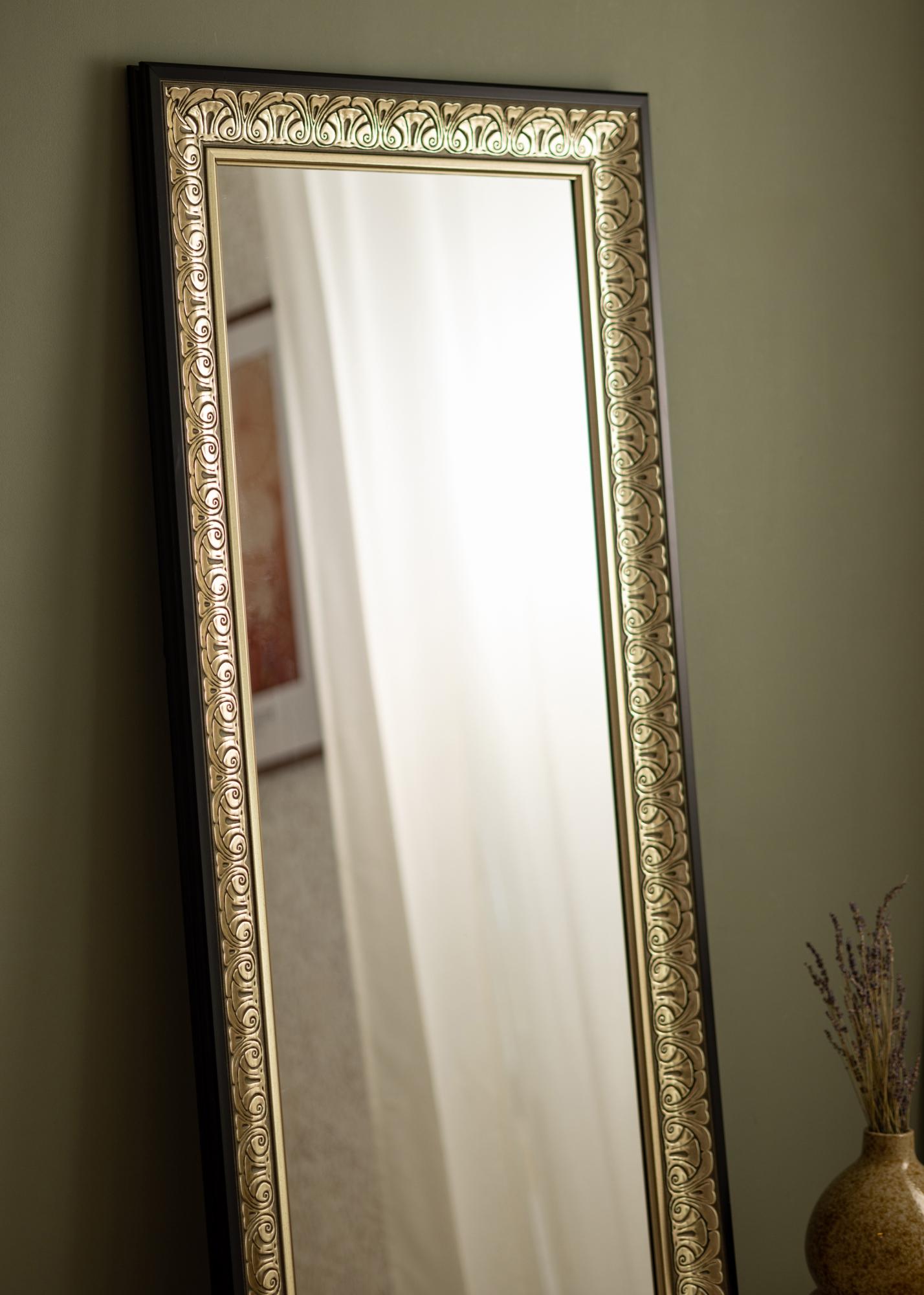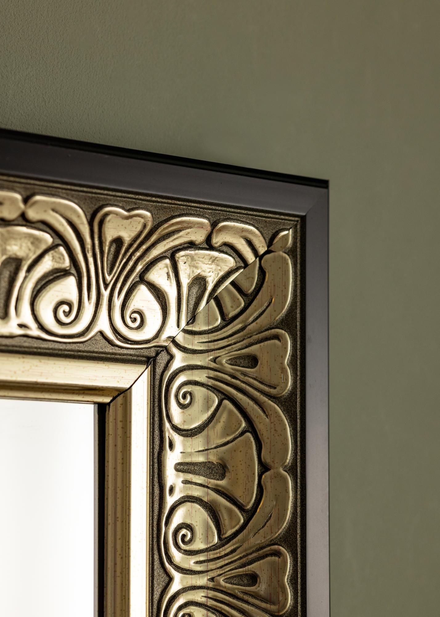 Elegantný strieborný ornamentovaný zrkadlo, ktoré sa hodí rovnako dobre do šatníka ako do chodby alebo kúpeľne. Vzhľad rámu okolo zrkadla, s nadčasovým vzorom, zabezpečuje, že zrkadlo sa hodí do všetkých typov interiérových štýlov, od romantických pastelových ženských spální až po viac štýlové a inak výrazne odhalené prostredia, kde zrkadlo vytvára kontrast. Tiež dobre vynikne zavesené nad komodu alebo bufet, aby vytvorilo pocit väčšieho priestoru v miestnosti.